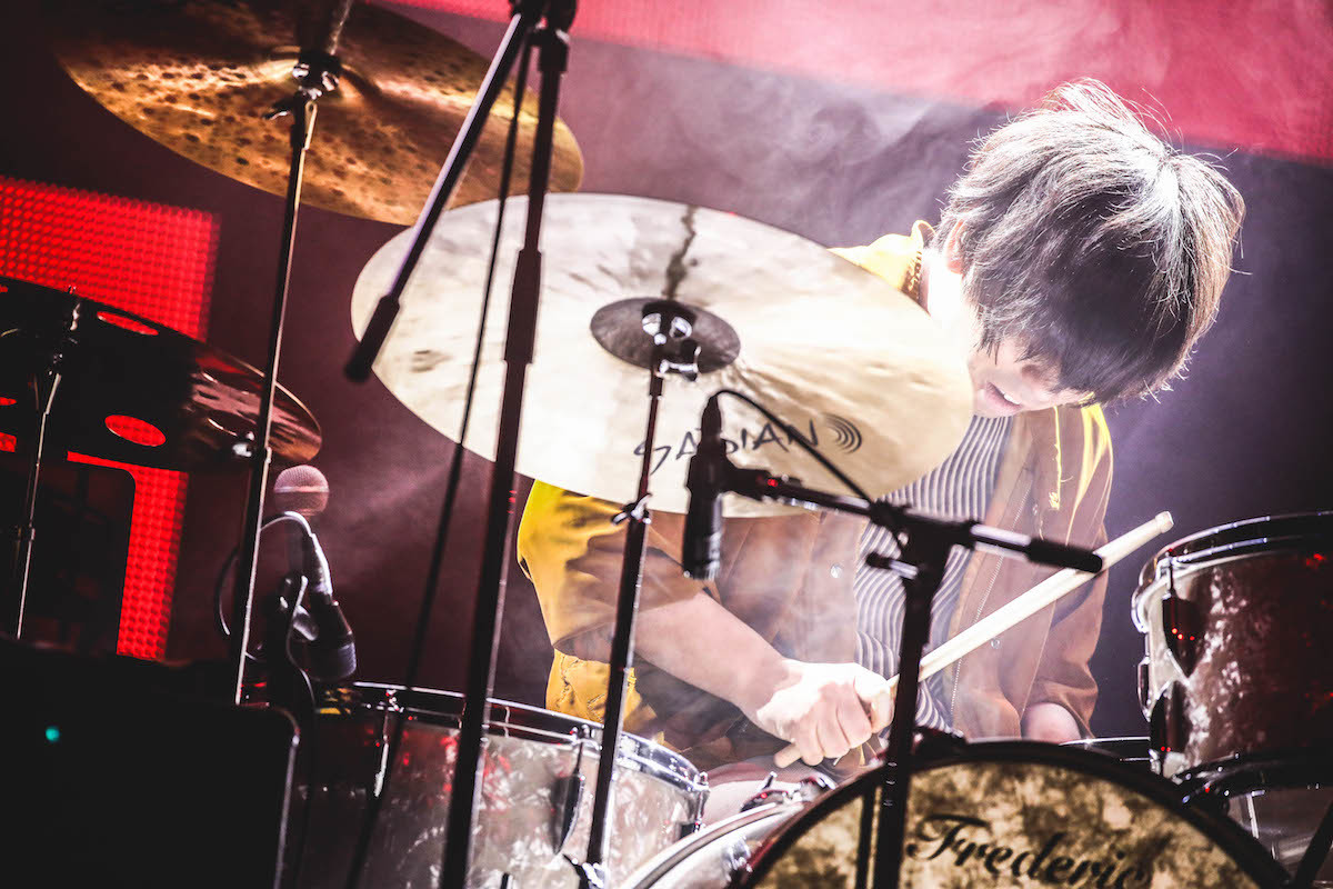 そんなFAB!!の大人っぽい落ち着いたトーンから一転、高橋のドラム・ソロからなだれこんだ「まちがいさがしの国」からラストスパートをかけるように、いつも以上に歌に感情を込めた「TOGENKYO」「スキライズム」とバンドの演奏は一気に熱を上げる。