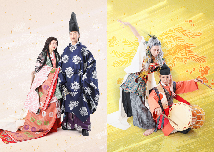 神代の始まりから奈良平安時代までの芸能と衣服に焦点をあて、1日限りのスペシャルなエンターテインメント舞台を繰り広げる『和楽奏伝×装束夢幻』。そのビジュアル撮影で西島数博、吉井盛悟、紫吹淳、愛加あゆの主要キャスト4名が身に纏ったのは、高い技術で現代にまで継承される、古来から受け継がれてきた装束の数々だ。本番のステージでも用いられる“本物”を身につけた彼らの姿を追いつつ、まさに身を以て感じている作品への思いを聞いた。