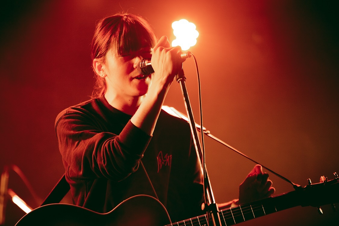 MCでは「今日は8曲やります」と、早々にライブ内容をネタバレした小林。1曲目、2曲目を聴いた後なので、アルバム『健康を患う』の収録曲を順番にやるんだろうなというのも容易に想像出来てしまうが、実際にそうだから驚いてしまう(笑)。さらに「1時間半の持ち時間があるけど、曲だけだと30分で終わってしまう」ことを語り、「だから1時間喋らなきゃいけない。困ったもんですね」とボヤく小林。無理して喋らなきゃいけないことは無いんだけど、サービス精神なのか、予定調和が嫌なのか、思いつきの即興トークで時間を埋めた後、アコギを背負ってようやく演奏へ。仄暗い照明にミラーボールの光が煌めく中、悲しみや孤独や痛みを飲み干す「悲しみのレモンサワー」が会場の空気をガラリと変える。さらに色気と哀愁もある歌声でしっかり聴かせた「スープが冷めても」と続いて観客を楽曲世界にグッと惹き込んだと思いきや、再び始まる即興トーク(笑)。「曲に浸らせろよ!」とツッコミたくなるところだが、それも含めて小林の表現だから仕方ない。