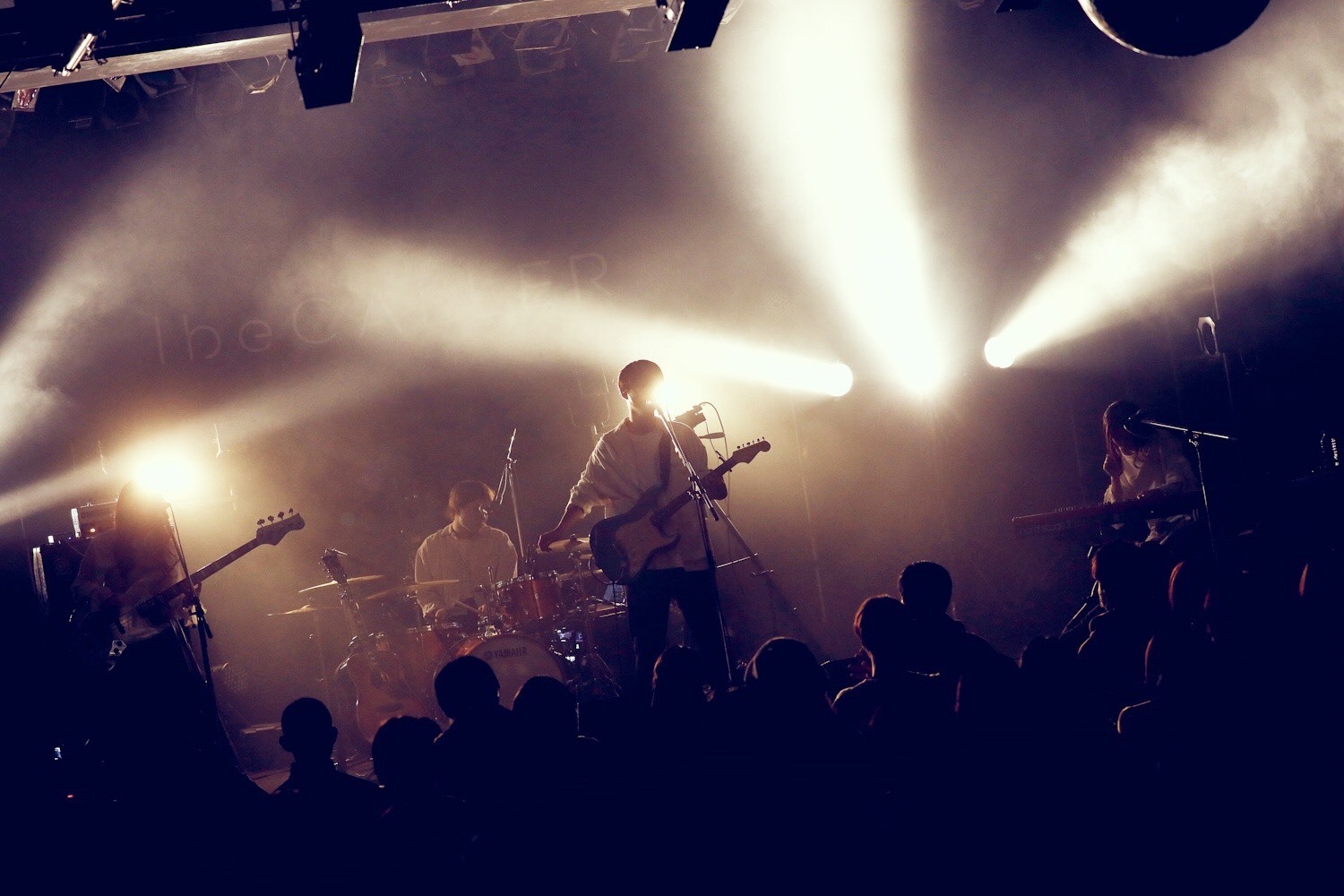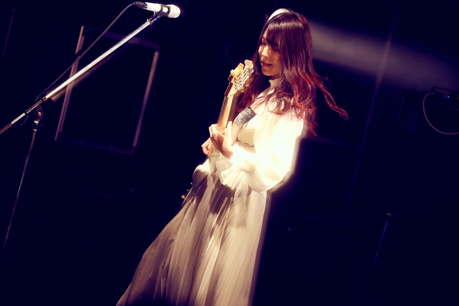 MCは真面目に誠実に、しかし「政府はアイビーカラーが嫌いなんちゃうの?」と、笑顔でユーモアも忘れずに。「横顔」は、同じアップテンポでもカントリー風の軽快なリズムが特徴の、明るく伸びやかな1曲。いつかどこかで聴いたようなノスタルジーへと聴き手を誘う、佐竹は本当に非凡なメロディメイカーだ。そこに対位法のように、クラシック調の気品ある旋律を添えて曲の魅力を倍増させる、川口彩恵は本当に優れたキーボーディストだ。そして「はなればなれ」から『WHITE』収録の「カフェ」へ、曲中のせつなさ成分が徐々に増してゆくと、碩奈緒の“歌うベース”が俄然輝きだす。同じく『WHITE』収録の「L」は、彩恵の弾く優美なイントロから緊張感みなぎる攻めのロックチューンへ、アグレッシブな展開を見せる。『WHITE』でメンバー一丸となって作り上げたサウンドの構築美は、ライブでもしっかりと再現されている。