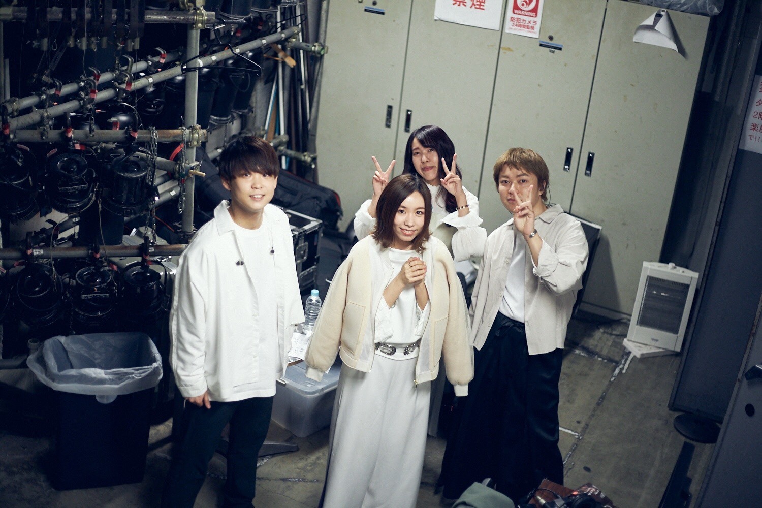ライブ後半は、桜の花を歌い込んだ「春を忘れても」から、初夏のイメージが薫る「青い風」へ、明るく弾むリズムに乗って季節は進む。彩恵が笑顔でクラップを求め、フロアから一斉に手が上がった。さらにスピードを上げて「愛が鳴るほうへ」、佐竹が「エンジン全開で行こうぜ!」と叫び、七色のライトに照らされてエレクトリックギターをかき鳴らす。このまま一気にラストまで行くか?と思いきや、季節は一気に冬へとチェンジ。「冬のあとがき」「orion」と、エモーショナルなロックバラード二連発でしっとり静かに聴き入らせる、これぞセットリストの妙。バラードだからこそ激しく感情をぶつける、酒田のドラムはここでもよく映えている。