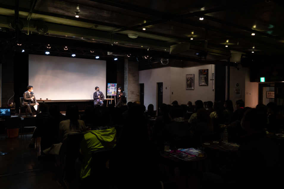 満席となった会場には、MR.BIGファンが駆け付け、大きな拍手と共にトークイベントがスタート。川西監督は「ヘヴィメタルファンとして、会社のイベントでメタルの神様・伊藤政則さんと一緒にイベントができるなんて、とてもうれしいです!」と挨拶。伊藤氏は「川西監督が撮った映画『MR.BIG~3・11から10年 被災地とともに歩んだ外国人バンド』は、まさに愛情が毛細血管のように張り巡らされた作品」と絶賛した。