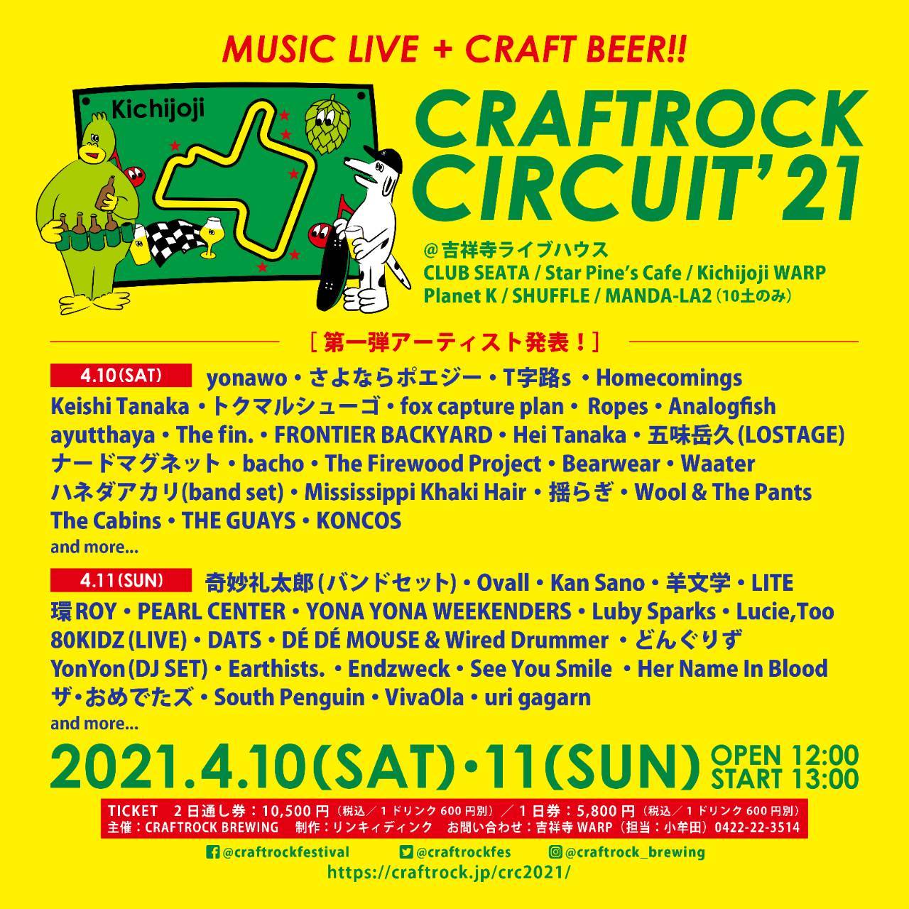 音楽とクラフトビールのサーキットイベント『CRAFTROCK CIRCUIT ’21』が、 4月10日(土)・11日(日)に吉祥寺6ライブハウスで開催することが決定した。