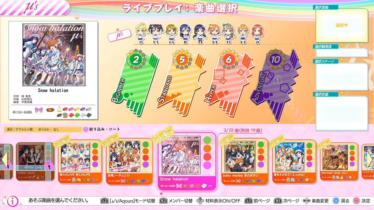 μʼs :内田 彩(南ことり役)、徳井青空(矢澤にこ役)、Aqours :高槻かなこ(国木田花丸役)、降幡 愛(黒澤ルビィ役)、Saint Snow :田野アサミ(鹿角聖良役)、佐藤日向(鹿角理亞役)