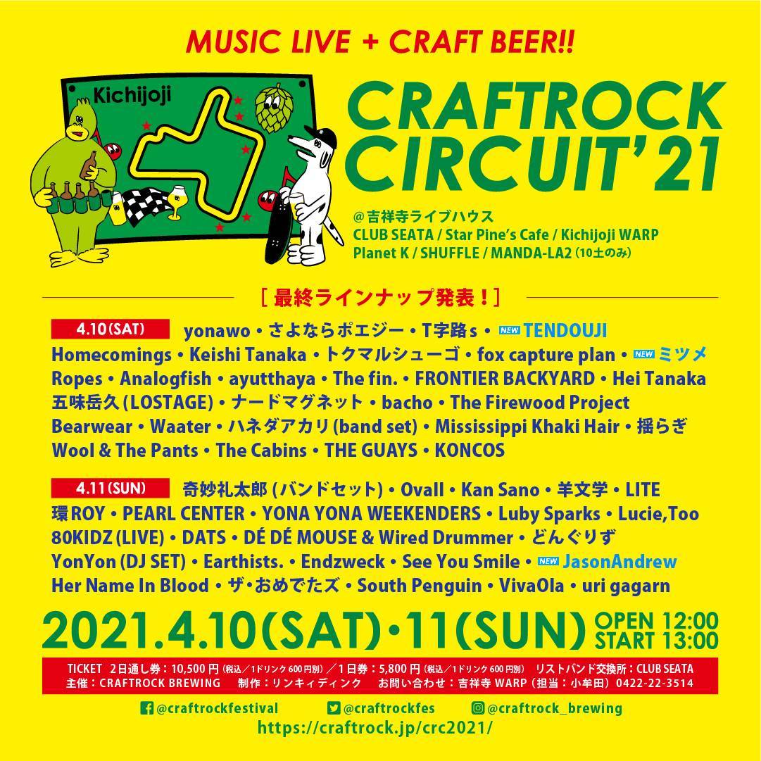 4月10日(土)・11日(日)に吉祥寺6ライブハウスで開催する音楽とクラフトビールのサーキットイベント『CRAFTROCK CIRCUIT ’21』の追加アーティストが発表された。