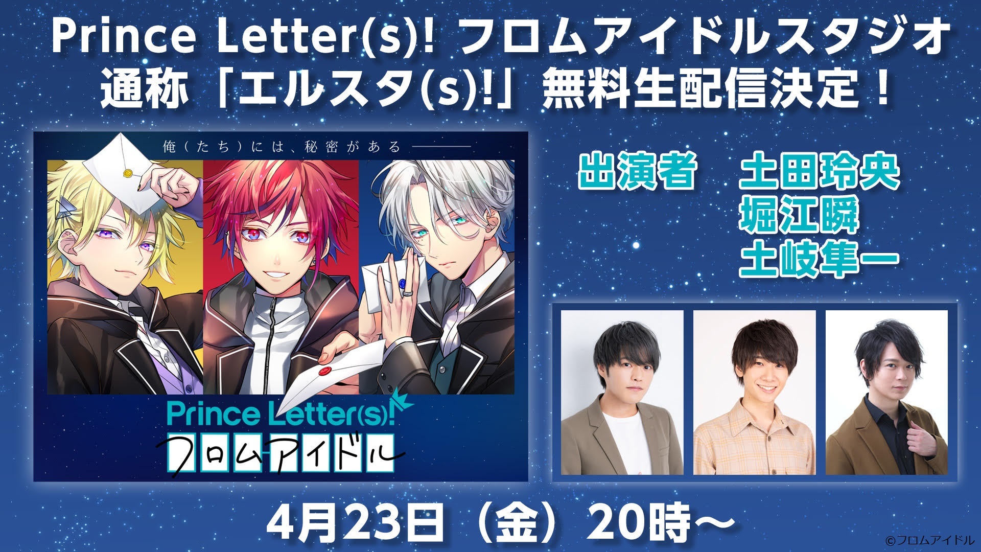 堀江瞬、土田玲央、土岐隼一が起用されている、「文通」もできる総合アイドルプロジェクト『Prince Letter(s)! フロムアイドル』が4月23日(金)から本格始動することが発表された。 同日には無料生配信イベントを実施する。また、サンプルボイスも3月24日(水)から順次公開される。