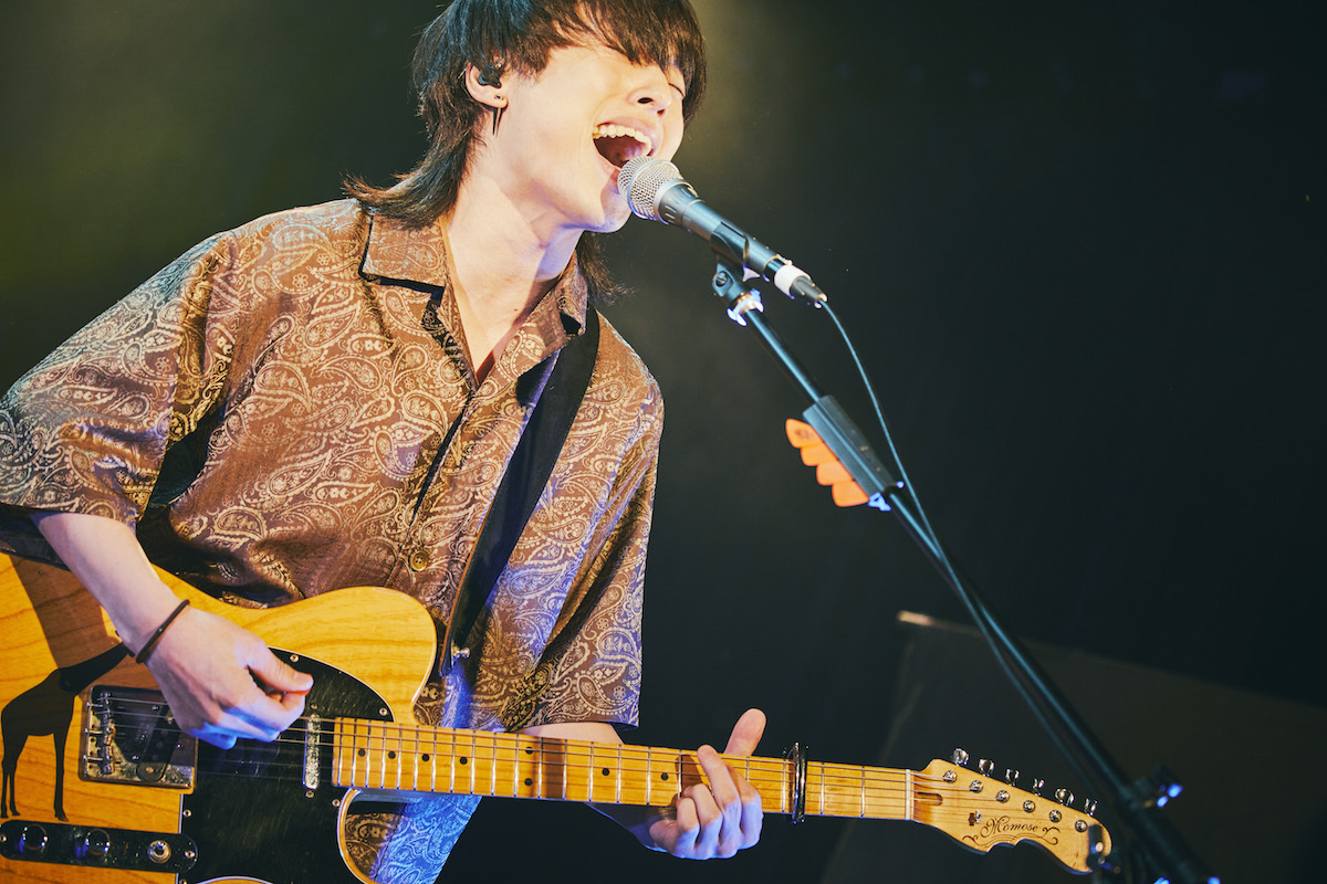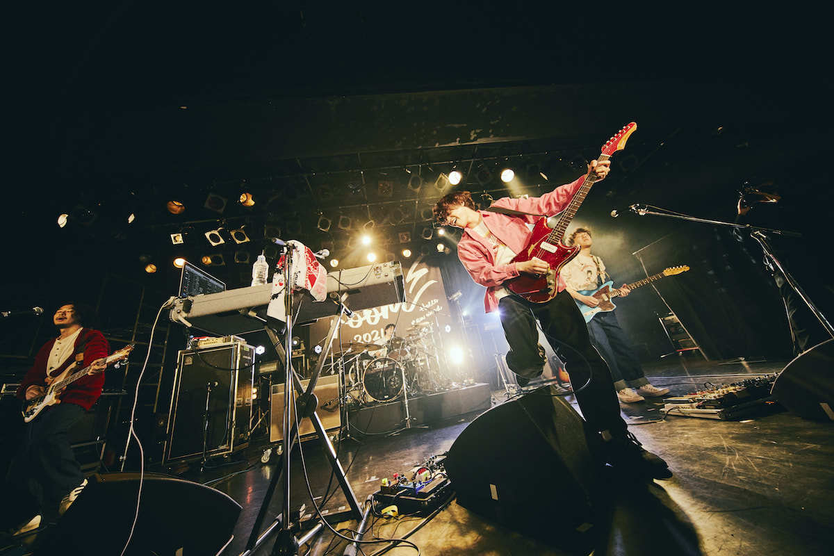 赤の照明を浴びて颯爽と登場したのはトップバッターを務めるPanorama Panama Town。2016年に開催された『MASHROOM』にてオーニングアクトを務めた際、初めてLIQUIDROOMのステージを踏んだという彼らだが、そんな当時を振り返るように2016年リリースの「SHINKAICHI」、そして「いい趣味してるね」と立て続けに披露。ライブではお決まりの自己紹介ラップを挟んだ後、「今日は原点に戻りまして、俺らが最初に作った曲!」という岩渕想太(Vo/Gt)の掛け声で「ロールプレイング」を投下する。バンド結成当時の初期衝動を彷彿とさせるような熱いパフォーマンスはオーディエンスの心を掴んで離さない。