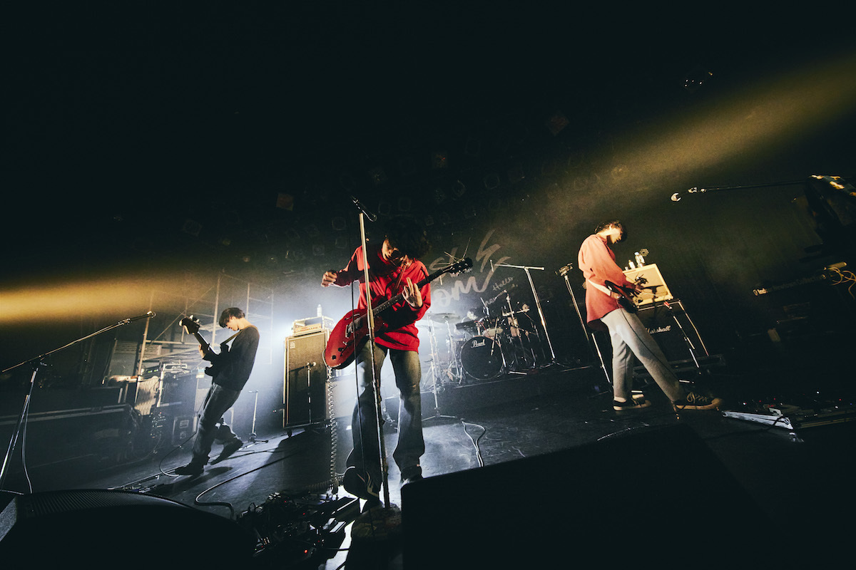 「MOMO」の切り裂くようなイントロが会場の空気を再加熱し、岩渕のリズミカルな歌唱と高速ギターリフの合わせ技が炸裂。その熱が冷めやらぬまま、「悲しい夜を超えてまた逢いましょう」という言葉と共に最後に奏でられたのは「Sad good Night」。ブルーの照明に照らされ、ひと言ひと言噛み締めるように歌う岩渕の姿が印象的だった。4月7日にリリース予定のEP『Rolling』からも3曲披露するなど、新旧織り交ぜたセットリストには、地に足をつけ進み続ける逞しい3人の姿が映し出されているようだった。