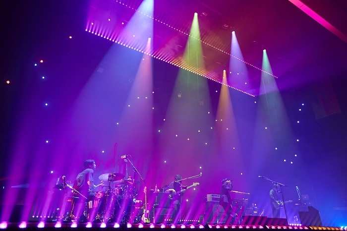 川谷と長田が珍しくどちらもアコースティックギターを演奏する“フラれてみたんだよ”では、薄暗い照明の効果も手伝って親密な雰囲気が生まれ、再びステージがスモークに包まれた“夜光虫”では〈誰の幸せも願えぬ心 日の光で赤くなった〉という歌詞に合わせて照明も赤く染まり、楽曲の世界観を引き立てる。新たなファン層拡大のきっかけとなった“夏夜のマジック”では、アウトロで川谷が後鳥からベースを受け取り、後鳥が川谷の代わりにフロアを盛り上げ、演奏を止める役目をするという珍しい一幕も見ることができた。