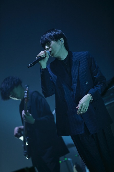 序盤は“夜行”や“夜漁り”など、『夜行秘密』からの「夜」をテーマにした楽曲と、“想いきり”や“瞳に映らない”といったライブの定番曲を織り交ぜながら進行。声を出せないオーディエンスも、手を上げたり、手拍子をしたりして、バンドの熱演に応えている。MCでは川谷がツアーを振り返り、収容人数が制限されたフロアを前に、「またここがいっぱいにできるまで頑張ります」と話すと、今回のツアーでひさびさに演奏されるようになった“藍色好きさ”が届けられた。