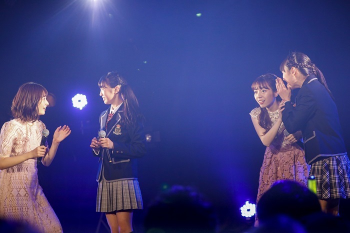 そしてこの日最大の演出のひとつ、小学生最後の挑戦「決意の小6ピアニカ・リコーダーセッション」パートへ。青山菜花・白浜あやがピアニカとリコーダーでB.O.L.Tの楽曲メドレーに挑戦するという企画で、この日のために2ヶ月におよび練習したという青山菜花・白浜あやはステージ上で緊張をみせつつも・・・アイコンタクトを交わし、息ぴったりに「星が降る街~夜更けのプロローグ~足音~寝具でSING A SONG」メドレーを大成功に収め、ファンから贈られた鳴り止むことのない大きな拍手に笑顔で応えた。続くMCでは内藤るな・高井千帆から小学校を卒業する2人へ手作りの卒業証書授与が行われた。思わぬご褒美に白浜あやは「ずっと卒業式をしていたいくらい幸せです!」と答えると、高井千帆からは「謝恩会なのか卒業式なのかわからなくなっちゃったね」とこの日のテーマを振り返りながらも会場は笑いに包まれた。