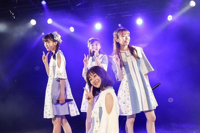 まだまだ物足りないといわんばかりのアンコールを求める拍手が鳴り響き・・・なんと爽やかな白と青が印象的なワンピースの新衣装に身を包んだメンバーが登場!この日最大のサプライズにファンからはこの日一番の拍手が鳴り響き、初披露の新曲「スマイルフラワー」をパフォーマンス。ピースサインが特徴的な振り付けで初披露にもかかわらず多くのファンが笑顔で振り付けをコピーする様子も印象的であった。高井千帆からこの5月19日発売の新曲「スマイルフラワー」がタイトル通り笑顔や花を通じて「人との関わり」や「行動」をテーマに、笑顔がもたらすポジティブなメッセージが込められた曲ということが伝えられた。最後にあらためて青山菜花から「本日はお越し頂きありがとうございます。中学校では楽しく、自分でやることは自分でしっかりやっていきたいと思います!みなさんが『大好きだよ』って言ってくださるんですけれど、私の方が大好きです!!」と、白浜あやは「これで小学校ラストになっちゃうと思うと悲しいですが、中学校に入っても階段を上っていくように成長していきたいと思います!」と思いを伝えた。内藤るな・高井千帆からは「ご卒業おめでとうございます!というお祝いと共に「学校とアイドル活動の両立で葛藤もあると思うんだけど、それを乗り越えて見れる今の景色とかを大切にしてください。何かあったらお姉さんたちを頼ってね!」とメンバー間の絆を深めあった。
