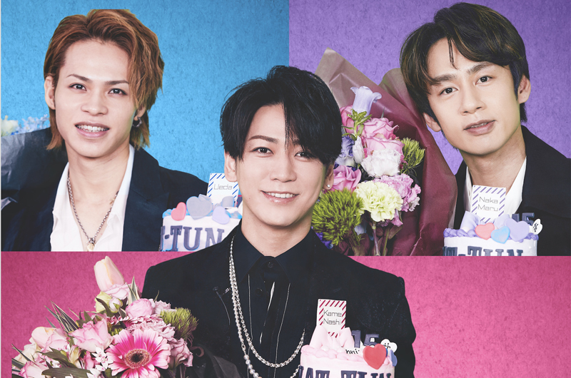 トップバッターで撮影に臨んだ亀梨は、右に上田竜也、左に中丸雄一がいる想定でコメントを撮影。スタッフからの難易度の高い要求に、「難(むず)っ!」とこぼしながらも、難なくこなしていく。メンバーカラーであるピンクの花束とケーキを手に、15周年のお祝いムードたっぷりな撮影になると「“1人でお祝いしたい人”みたいだよね?」と笑う場面も。インタビューでの雰囲気とはまったく違う、無邪気な笑顔をみせながら撮影現場を盛り上げていた。
