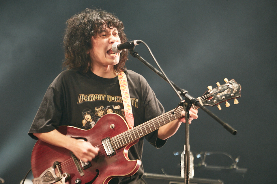 “10年間の様々なメンバーが一堂に会する《志磨遼平万博》”と称した本公演は、毛皮のマリーズ時代の楽曲「バンドワゴン」、「ボニーとクライドは今夜も夢中」を“ホストバンド”(Ds.菅 大智、Ba.有島コレスケ、Gt.越川和磨、Gt.牛尾健太、Key.中村圭作、Sax.福島健一、Tp.菅野淳史)と供に披露し幕をあけた。