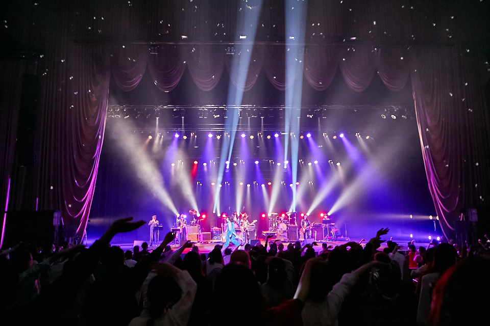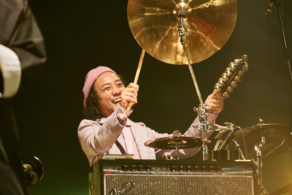 続いて『平凡』ツアー時のメンバー“FUNK GANG”(Ds.ビートさとし、Ba.山中治雄、Gt.有島コレスケ、Per.堀嵜ヒロキ、Sax.福島健一、Tp.菅野淳史)が登場し、「規律/訓練」「Automatic Punk」「ヒッピーズ」の3曲を演奏。メジャーデビュー10周年に相応しい豪華な顔ぶれが揃う特別なステージとなった。