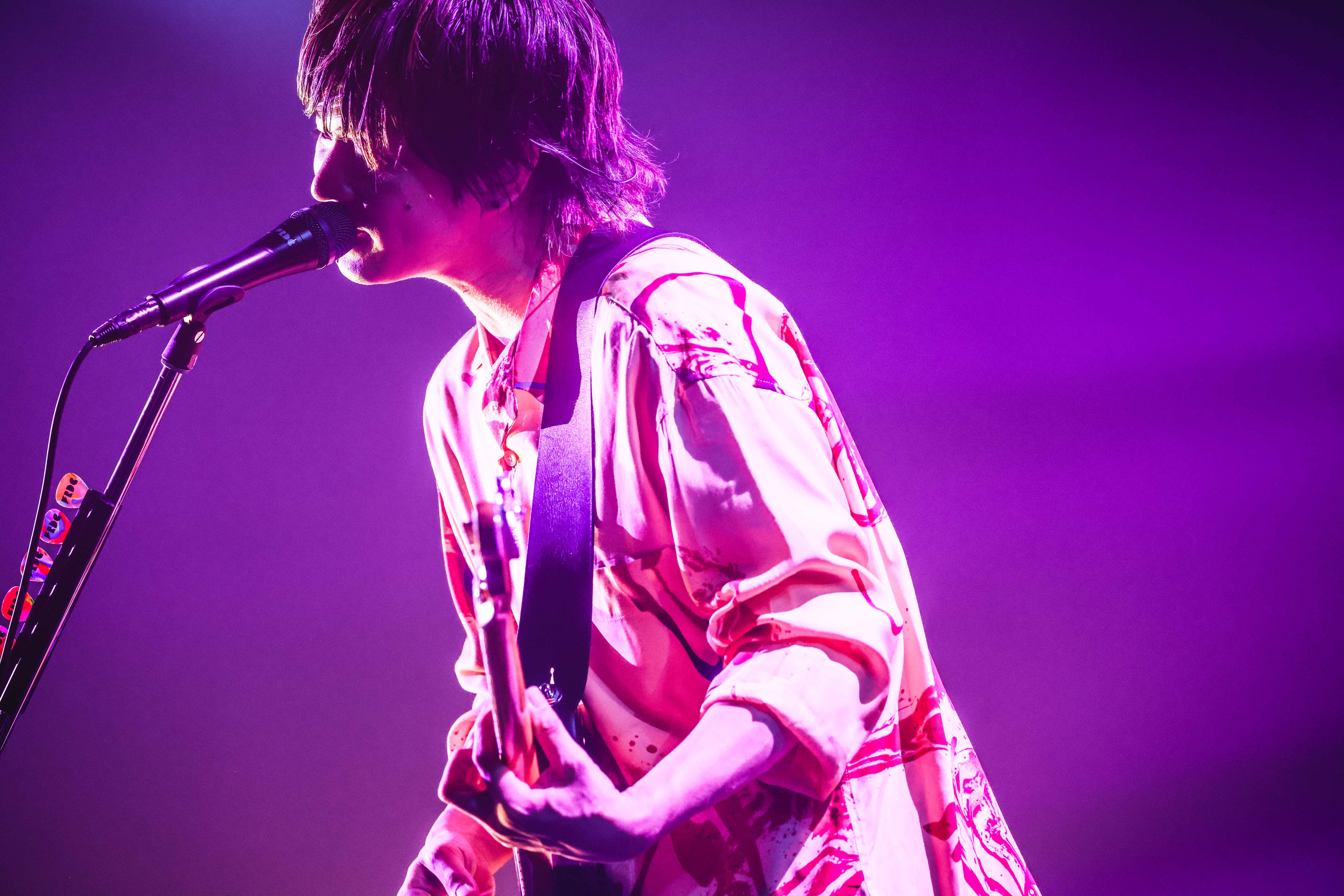 のっけからキラーチューン「オンリーワンダー」で会場を熱狂させたかと思えば、「みんな音楽、好き?」と、ハッとするほどシンプルな問いを投げかける三原健司(Vo.Gt)。「すごく当たり前のことを言ってると思う。でも今は、その当たり前が大切ですよね。この景色は1年間あなたたちが作ってつないできたものです。遊び尽くしましょう!」(健司、以下同)と続け、昨年9月に発表した「Wake Me Up」へとなだれ込む。ダンスロックの先頭をひた走る4人の強靭な意思が、歌声に、リズムに、音の隅々まで宿り、ブレないビートごと観客の心に突き刺していくようだ。