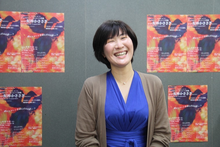 老田裕子:『泥棒かささぎ』は今回が関西初演。YouTubeでは日本初演である2008年の藤原歌劇団の「泥棒かささぎ」を見ることができます。「泥棒かささぎ」の音楽は、ピンチの時も悲しい時も、心が極悪真っ黒けの時も、とにかく楽しい!短調の曲は数えるほどで、それが効果的に働いているように思います。歌わせていただくニネッタは、幸せな登場から、どんどんトラブルに巻き込まれてしまい、とうとう死刑を宣告されてしまいます。ソプラノが歌うにしては低い音域も多く、高音や華やかさはジャンネットのほうがあるように思います。2重唱でもジャンネットが上でハモっていることが多い。ですがニネッタは出演者全員と絡んでいくので、なんといっても圧倒的に歌う量が多い!人と人とのつながりがもたらす心のあたたかさを、このオペラから感じていただければと思います。