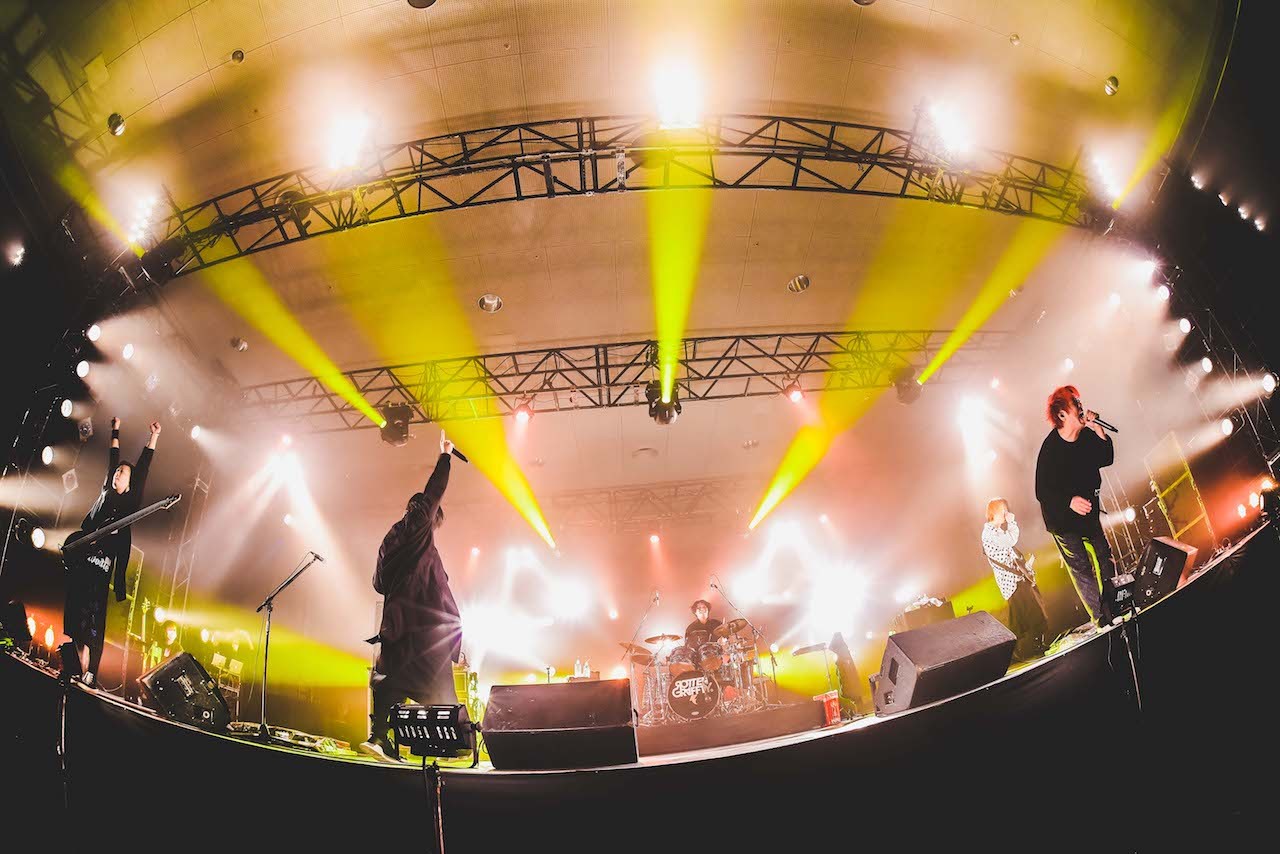 KAZUOMI(Gt.Programming)のギターが空気を切り裂くと、オーディエンスは溜めていたパワーを放出させるかのように拳を力強く頭上へ。「拍手なんかいらねえ。モッシュもダイブもできない、声も出せない。けどヘドバンぐらいできるやろ! 大阪のカッコイイとこみせてくれ!」とNOBUYA(Vo)が煽ると、クラウドサーフやサークルモッシュはないが、今の状況を忘れさせるかのような通常モードの熱気が会場を包む。誰ひとり置いていかないステージのメンバーからは、そんな想いが会場のひとりひとりに向けられているようだ。