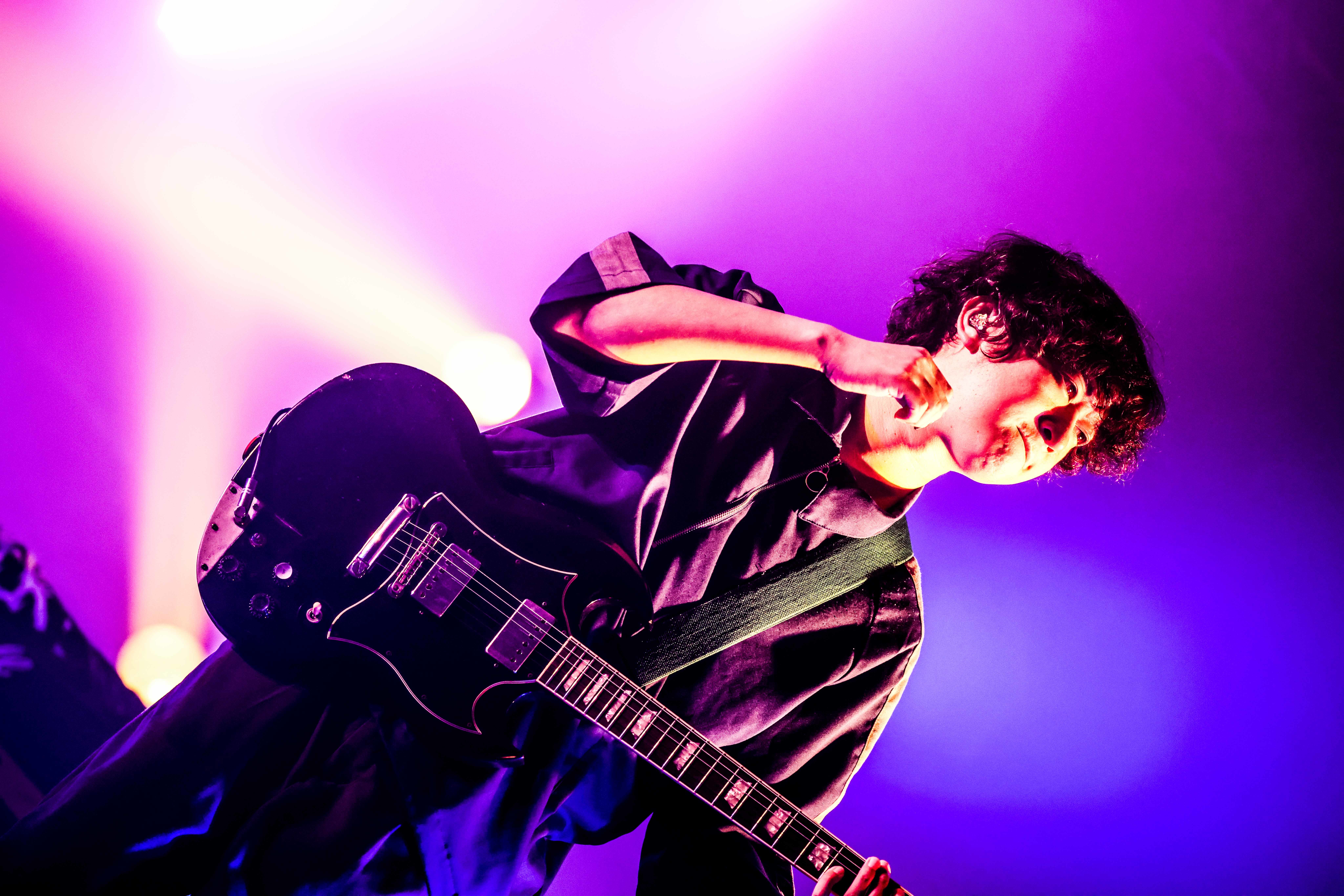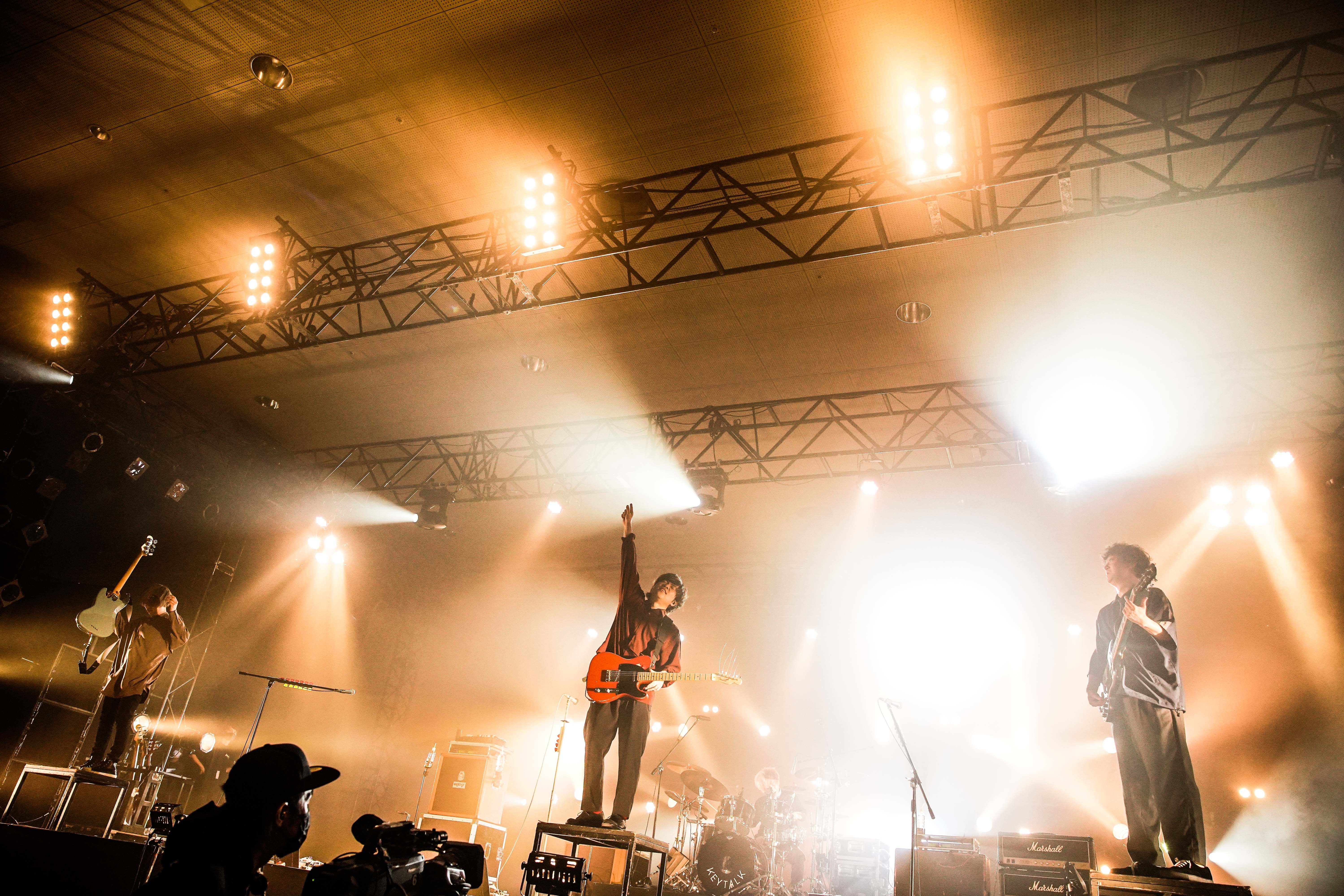 ハート型サングラスをかけた巨匠こと寺中友将(Vo.Gt)を筆頭に、元気いっぱいに登場した4人のテンションは野外フェス仕様。<コバルトブルーのオーシャン 空はすっと晴れ渡り>なんて外で聴きたいに決まっている「Summer Venus」だが、暗い室内にいても、彼らのハッピーオーラ全開のパフォーマンスが青い空を想像させてくれる。