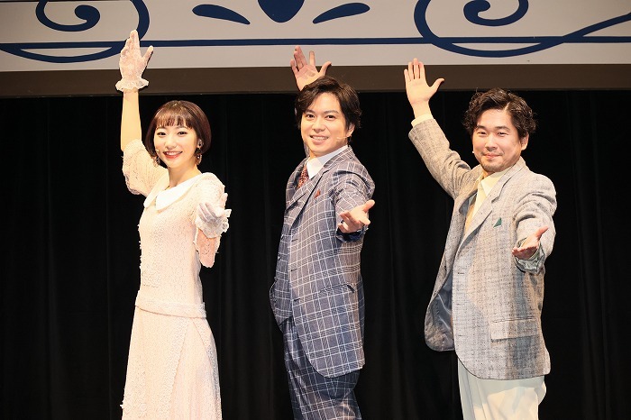 菊谷栄役の山崎は「まずは個人的なことですが……、吉川英治文学新人賞ありがとうございます」と、長編小説「オルタネート」で同賞を受賞した加藤になりきって話し出し、当の加藤から「違いますよ!」とツッコまれ、場内からも笑い声が。「きょうはこれさえ言えればいいと思ってきた(笑)」と満足気な表情を浮かべる山崎は、「幕を開ける以上は、エンターテインメントやライブは必要なんだと思っていただけるように全力で務めたいですね」と改めて意気込みを口にした。