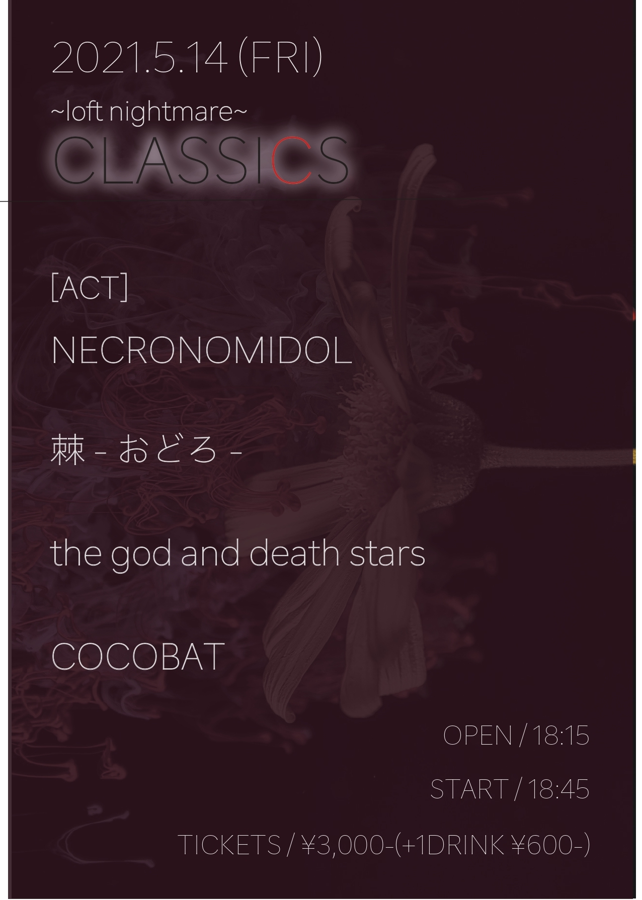 5月14日(金)に、新宿 LOFT主催でNECRONOMIDOL / 棘-おどろ- / the god and death stars / COCOBATの4組が出演する世代・ジャンルを超えた異種格闘技イベント 『~loft nightmare~ CLASSICS』が開催決定。