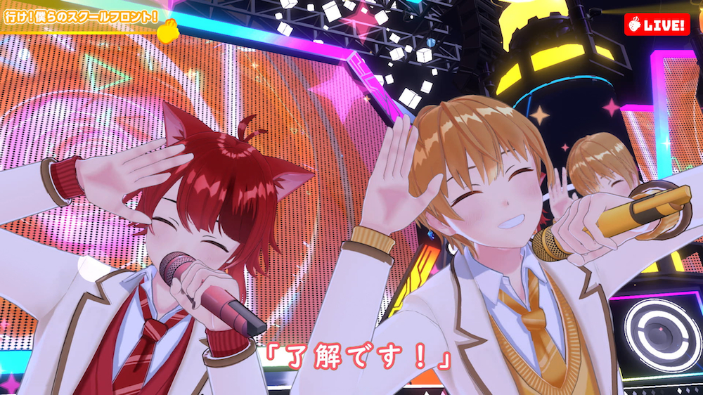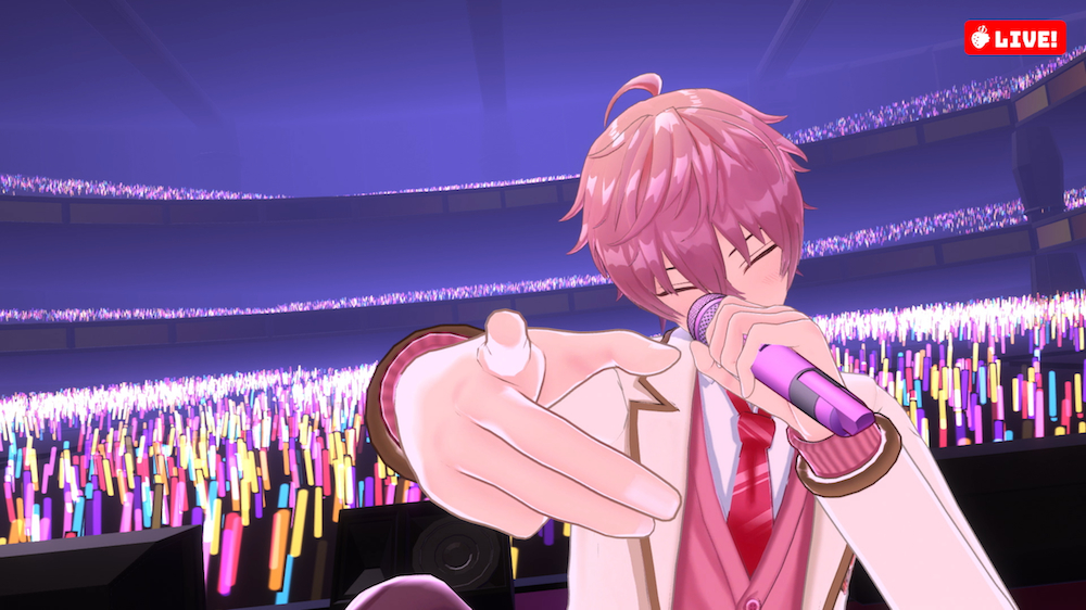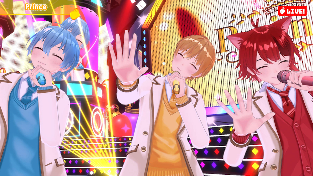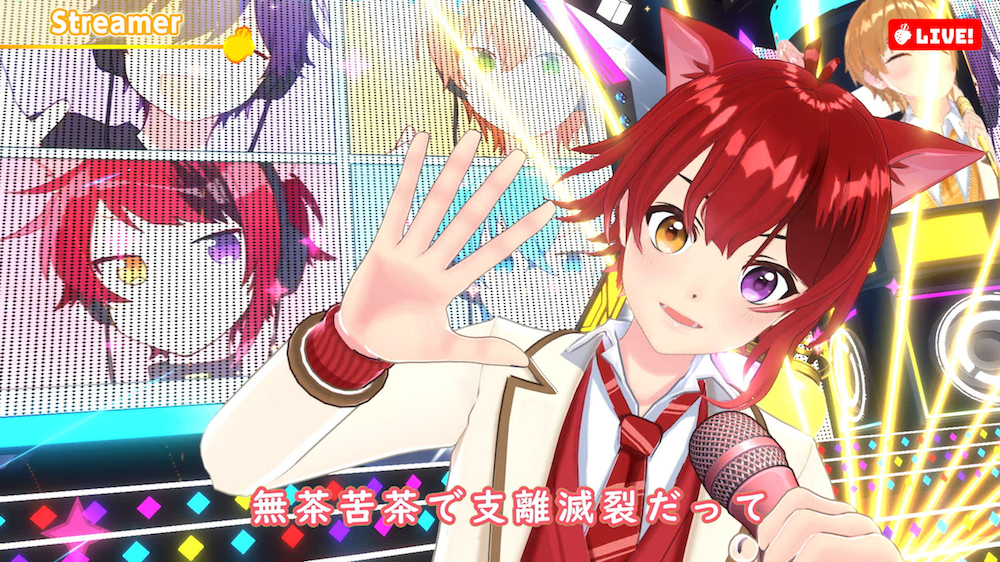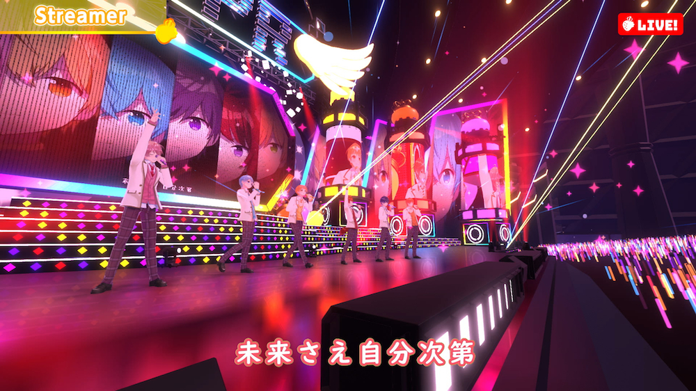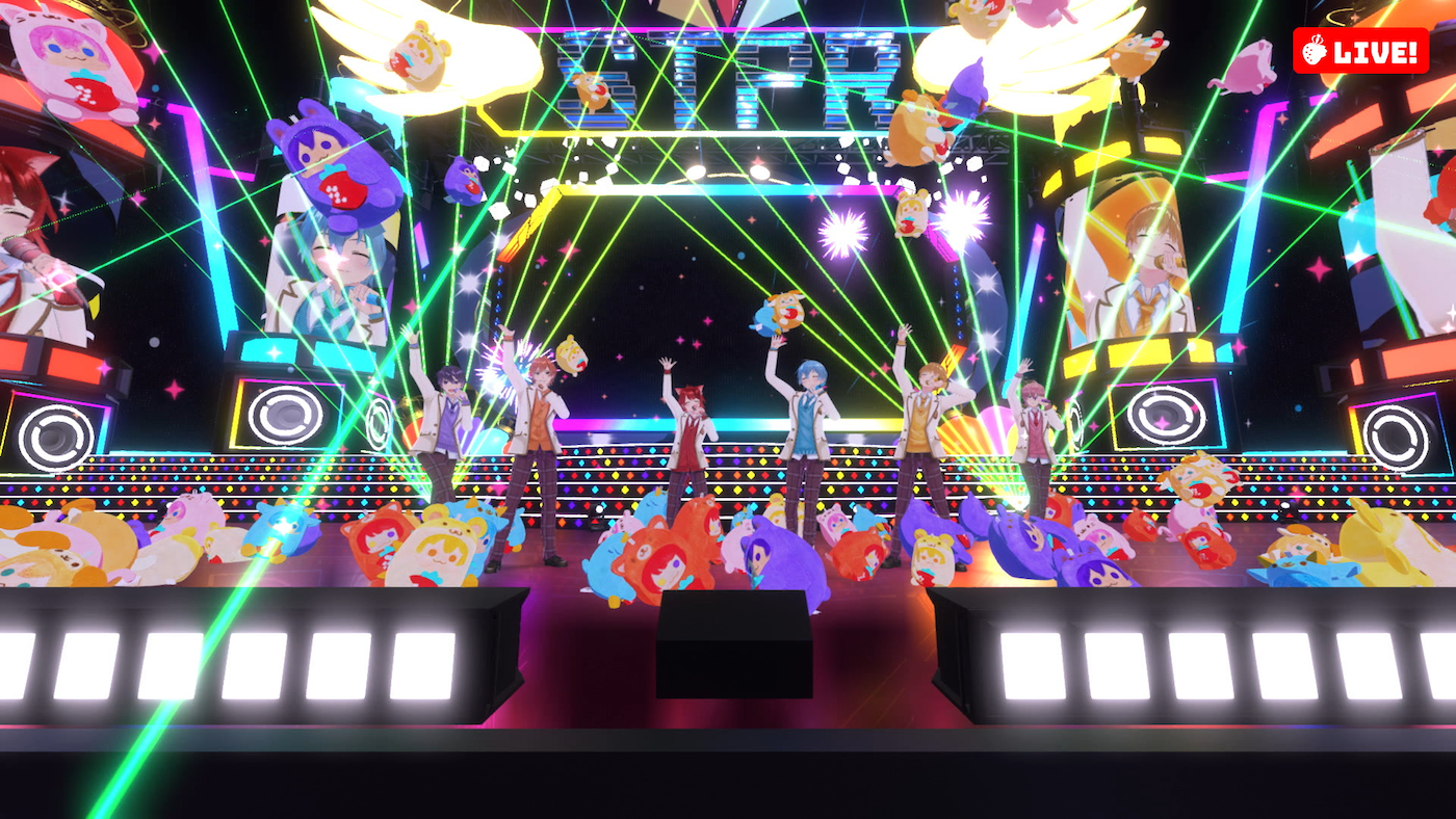 ドキドキとワクワクが止まらないカウントダウンから、「盛り上がっていこうぜ!」という声に導かれたのは、2020年9月にリリースされた3rdアルバム『Strawberry Prince』のオープニングナンバーでもある「Streamer」。2020年末に公開された「Feel Free!」のミュージックビデオでメンバー全員の3Dモデルが披露されてはいたが、揺れる髪の毛や細かな表情、動作など、VR(バーチャルリアリティ)やAR(拡張現実)のテクノロジーを駆使した映像は驚くほどにリアル。