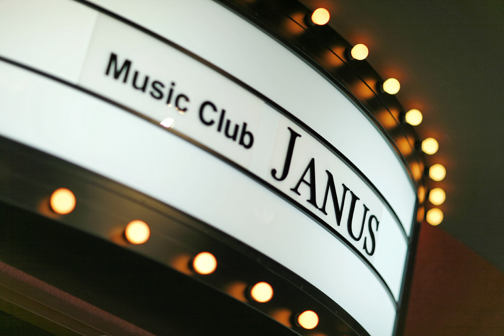 2010年4月「音楽と飲食が気取ることなく融合されたミュージッククラブ」として東心斎橋にオープン。大阪の重鎮から若手バンド、インディーズからメジャーアーティスト、アイドルまで、ジャンルに捉われることのないライブに、週末はディスコ営業もあり。 高級料理店にも負けない鉄板に寿司ネタケースと飲食部分もハイスペックになっています。シャンデリアにブラックライト、大きなミラーボールと、JANUSのロゴがラッピングされたDJブース、さらにロビーにはヘビ柄のソファ席もあり。