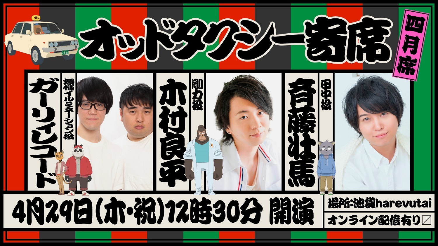 4月29日(木・祝)開催のイベント『オッドタクシー寄席 4月席』の本会場来場チケットの抽選申込、およびオンライン視聴チケットの販売が、イープラスでスタートした。