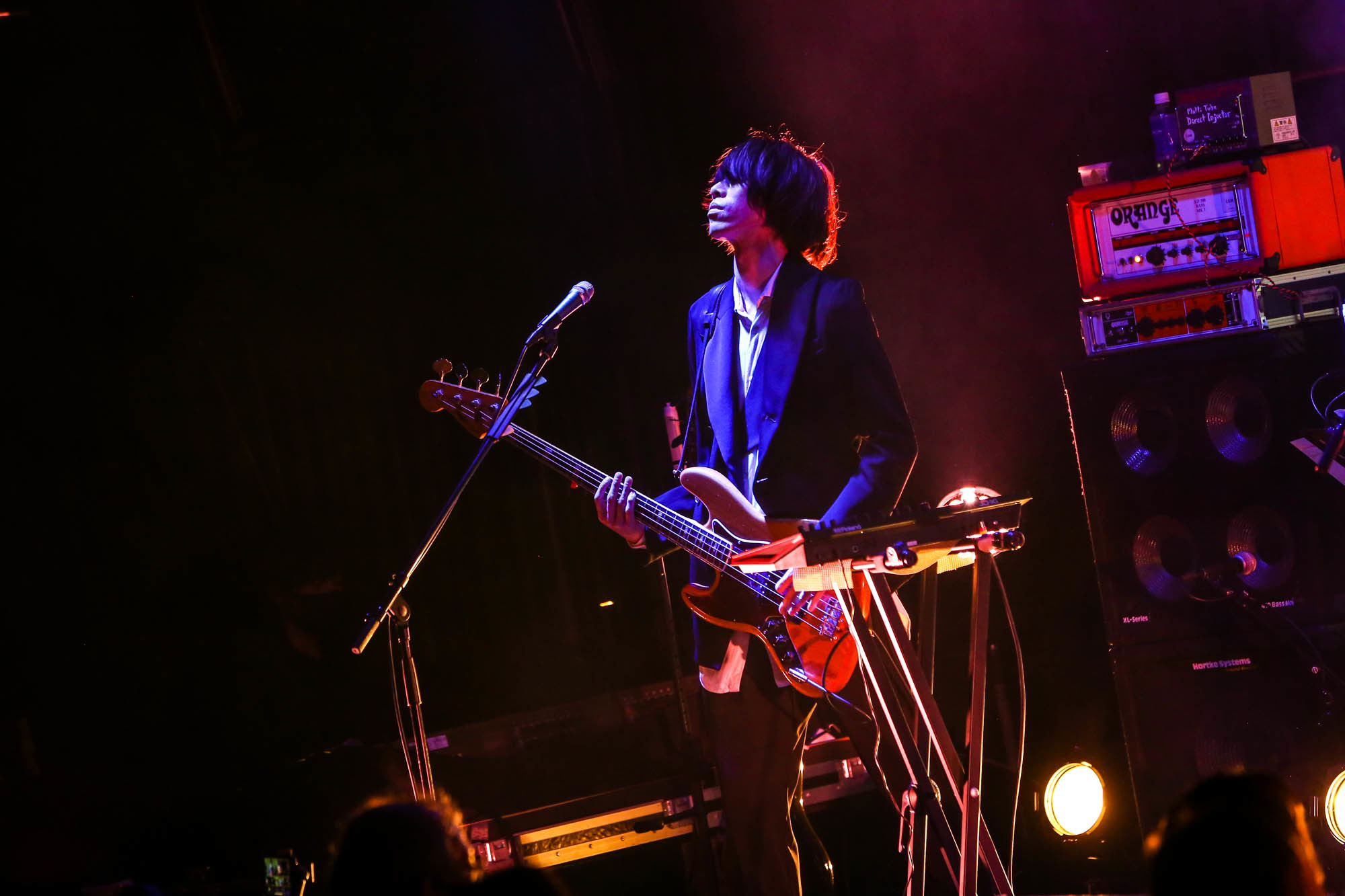 筆者が特にヤラれたのは、「バランス」「end-end」あたりの、比較的淡々と推移していきながら爆発力を溜め込んでいくタイプの曲だった。「バランス」はカナタの低音ボイスやクリーンな音色のギター、整然と8ビートを刻んでいくリズム隊による絶妙なアンサンブルが、曲が進むにつれ大きな上昇曲線を描いていく様が見事。客席から起こった手拍子がダンスミュージック的側面をより浮き彫りにし、メロディアスなギターソロも良いアクセントになっていた「end-end」と、その一つ前の「Ray」はカナタの鍵盤演奏も見どころで、なんだか人柄がにじみ出たような、どこか素朴でまっすぐな力強い音色を響かせてくれた。あとカナタに関しては、全体的に歌声の調子も相当良かったように思う。