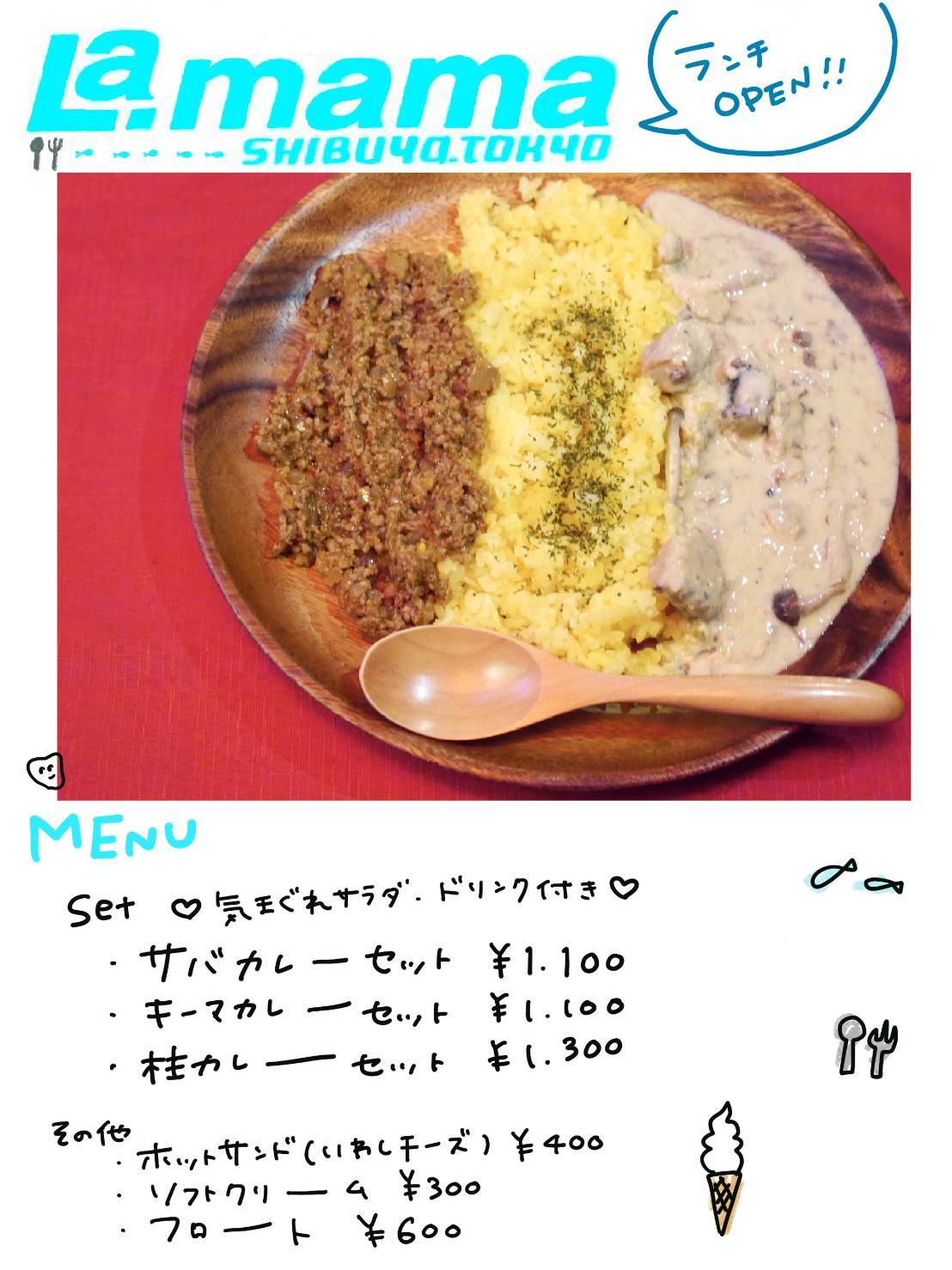 2月よりランチ営業を始めている渋谷のライブハウスLa.mamaが、ランチセットと題してメニューを更新。カレーに、気まぐれサラダとドリンクが付いたお得なランチセットを始める。テイクアウトも可能となっている。