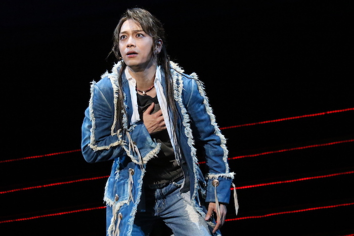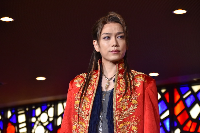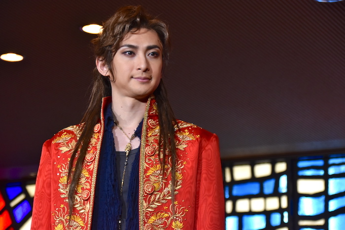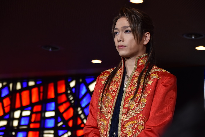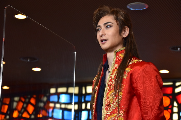 山崎育三郎:コロナ禍ということで、稽古もマスクをした状態での稽古でした。今まで経験したことのないような稽古場でした。舞台上で初めてマスクを取って、声を出したので、すごい鍛えられましたね。山でトレーニングしているような感覚。ずっと貧血になるぐらいで、マスクを付けっぱなしでの通しや稽古が結構しんどかったので、逆にすごく強くなった気もします。この赤いコートが実は今年2021年になって初めて新しくなったんです。新品になりました。すごく気持ちが高まっています。