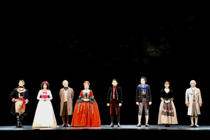 (左から)塩田康平、仙名彩世、山路和弘、キムラ緑子、今井翼、小西遼生、清水くるみ、天宮良