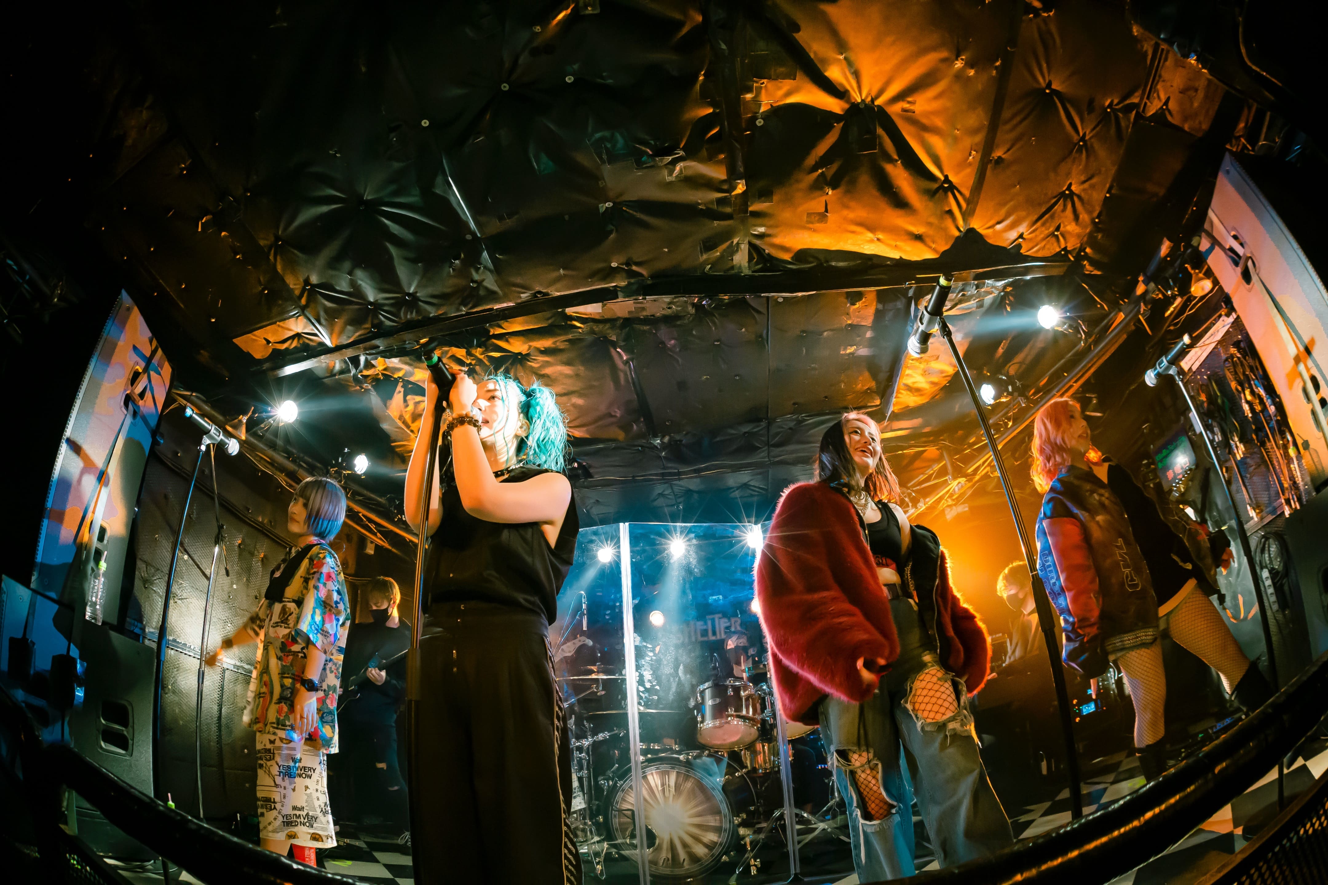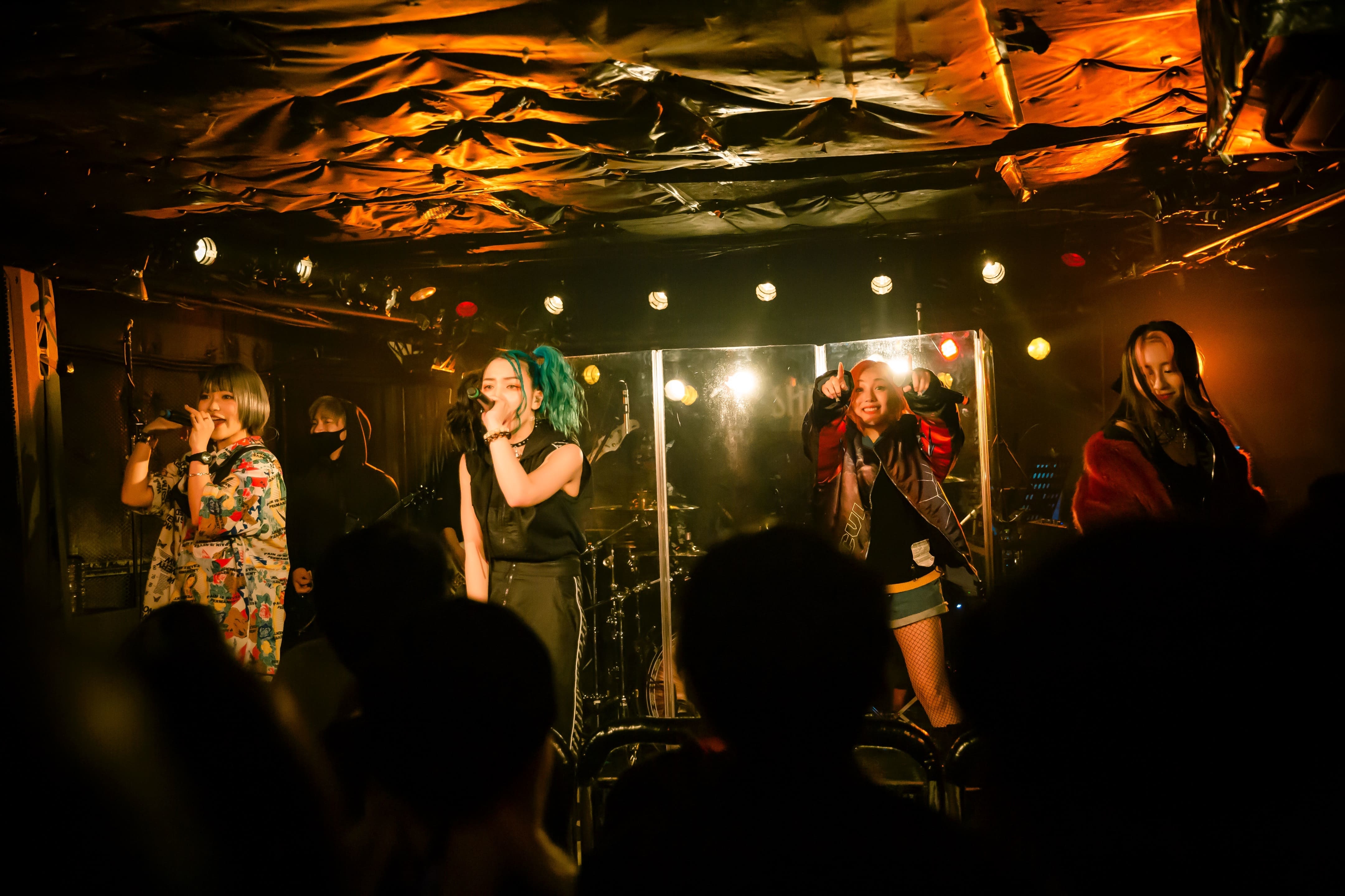 まだツアーが始まったばかりなので、曲順や演出のネタバレは控えるが。ひと言でいうと、ツアー初日の我儘ラキアは新しかったし、素晴らしかった! 『WAGAMAMARAKIA』収録の新曲たちを軸に過去楽曲やライブ定番曲で組み立てたセットリストは、バンドアレンジや組み合わせによる相乗効果もあって、どれも新鮮かつ刺激的。バンドセットが入ることで手狭になってしまうステージも、抜き差しを巧みに使った魅せ方やフォーメーションで狭さも逆手に取り、いつも以上の近さと迫力を感じるばかり。バンドサウンドの轟音を背中に受け、近距離から放つ歌とパフォーマンスは破壊力抜群! 初日の緊張を微塵も感じさせない堂々としたステージで始まった前半戦、楽しさが溢れすぎた4人に笑みが浮かぶ。