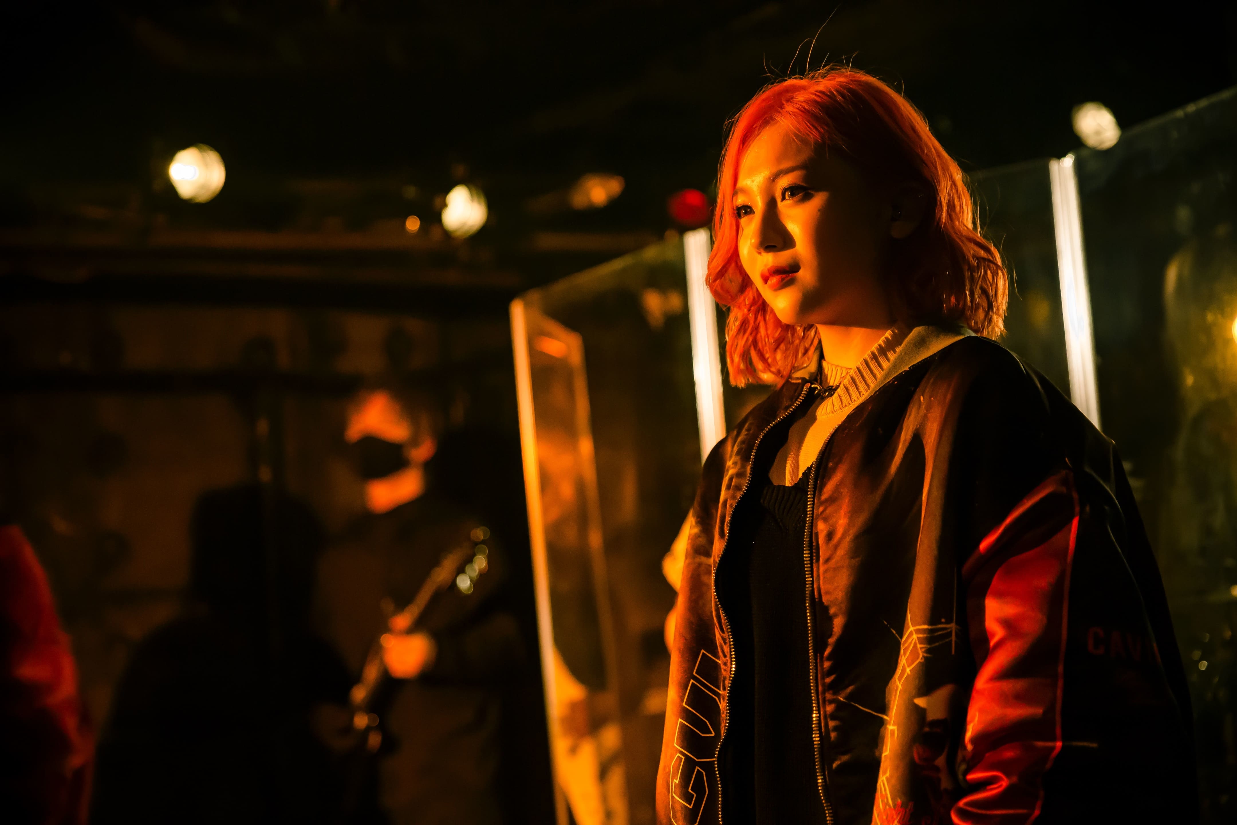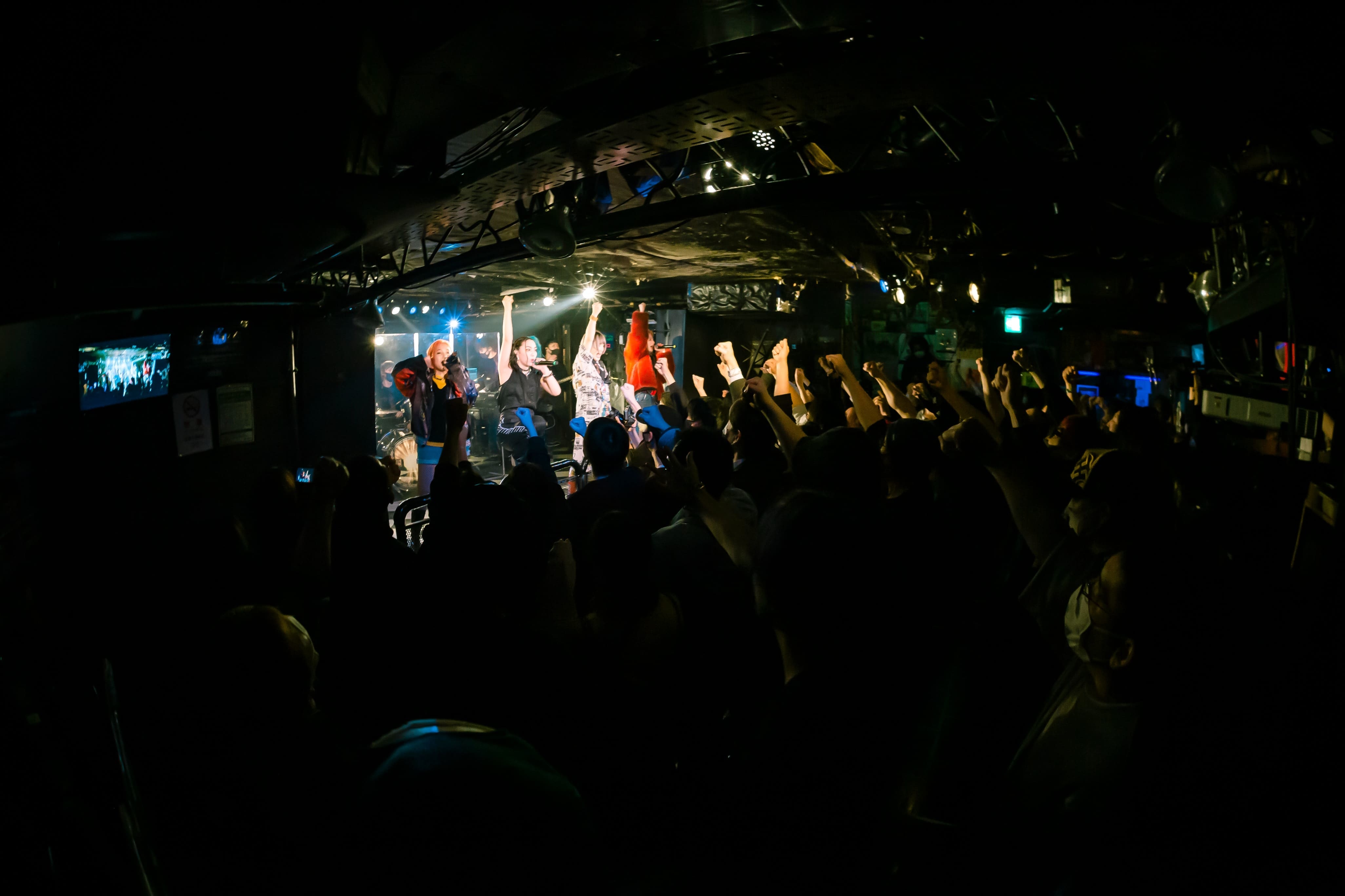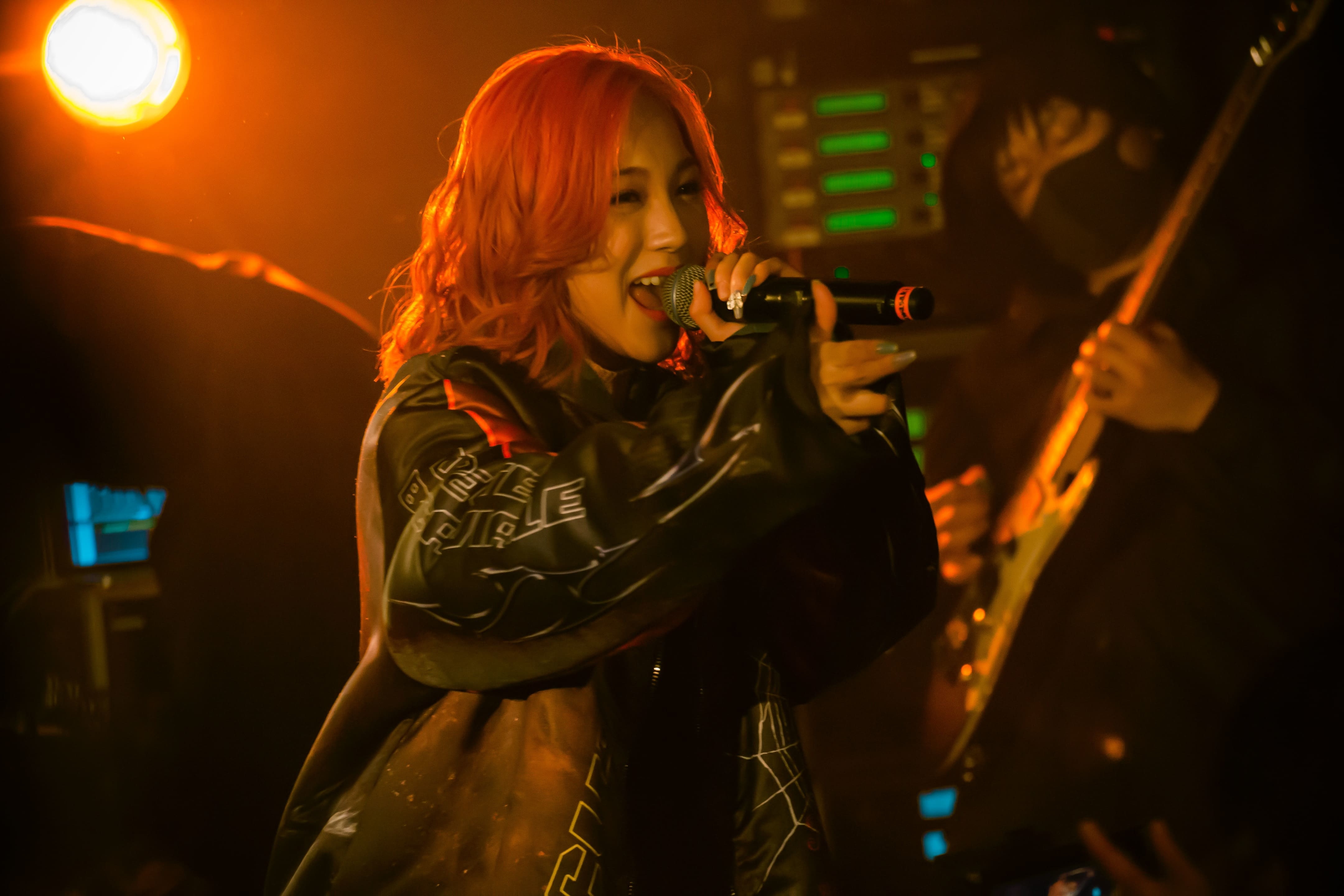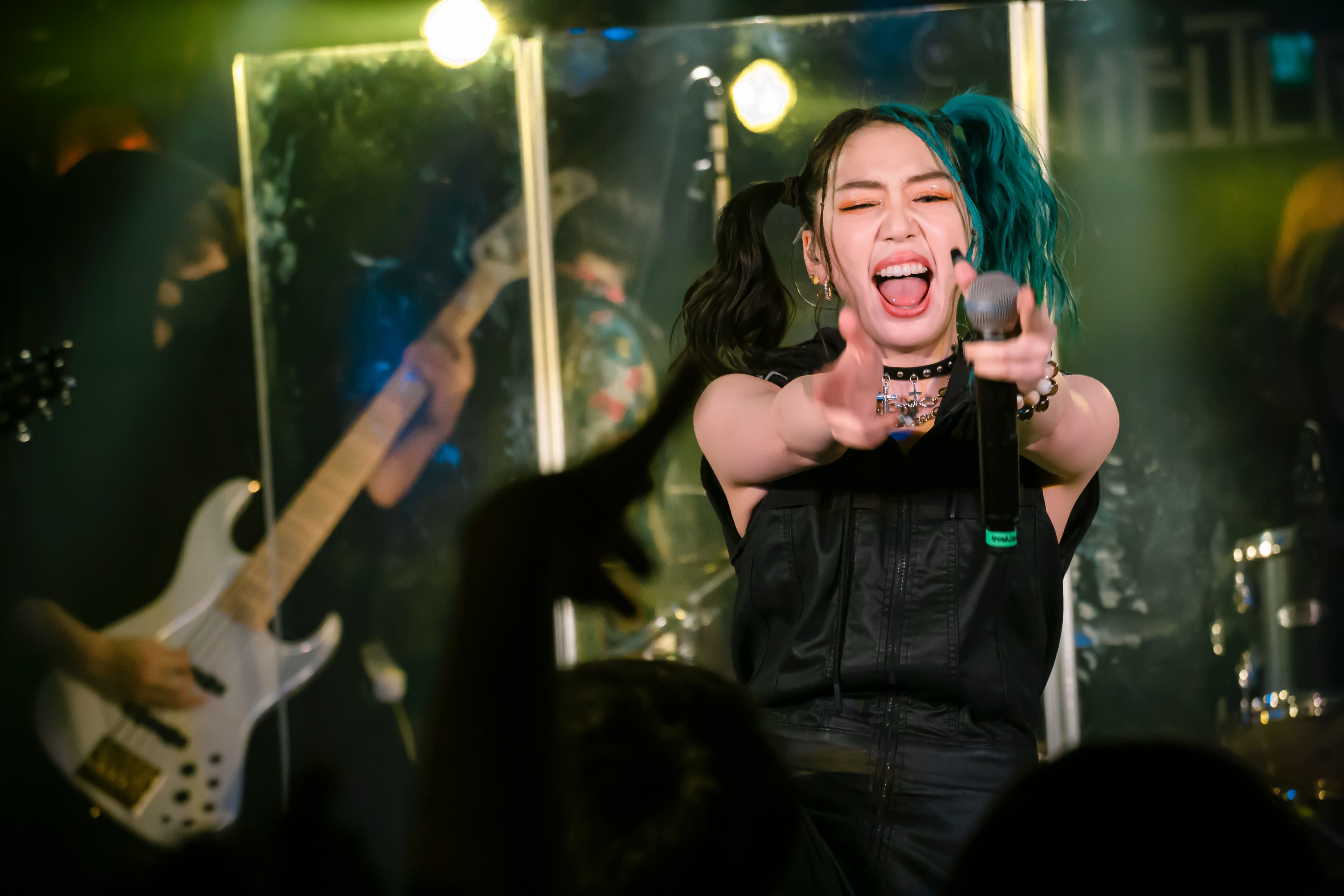 開演時間を少し過ぎた頃、照明が落ちてSEがけたたましく鳴り、メンバーが一人ずつステージに登場。「下北、お待たせしました! 楽しむ準備は出来てますか?」とMIRIが煽り、1曲目のイントロがバンド演奏の爆音で鳴らされると、声を出せない観客が歓声に代わりに拳を突き上げ、開演前から溜まっていた熱気が急上昇する。モッシュもリフトも出来ないけれど、瞬時に心通じ合い沸点に達するまでの異常なスピード感。いわゆる“新しいライブの形”を厳守しながら、それぞれが思い切り楽しめる空間作りがこんな容易に出来てしまうのも、闇に包まれても諦めずにライブをやり続けたラキアのひとつの成果だ。