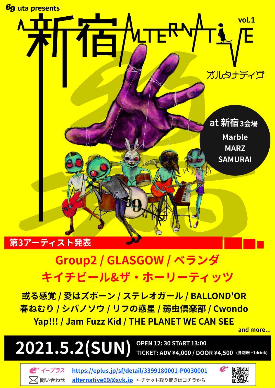5月2日(日)に開催される、名古屋在住のイベンターuta主催のサーキットイベント『新宿オルタナティヴ』に、Group2、GLASGOW、ベランダ、キイチビール&ザ・ホーリーティッツが出演することが決定した。