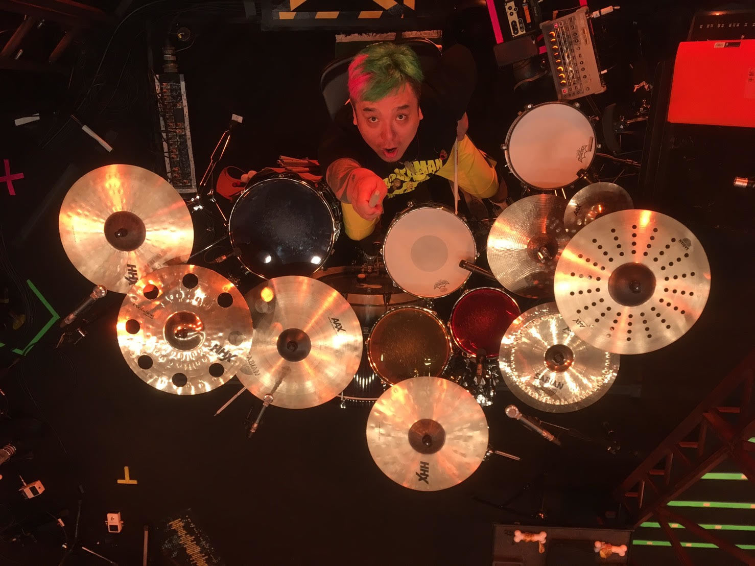 見えるのはベースだけ、あとは画面上で見て合わす、もうゲームみたいな感じなんです。ましてやEDMで、シーケンスが鳴ってる上にドラムを足していくので。どっちかというと、自分のドラムを殺さなあかんていうか。僕の中で「えっ、感情を無にして叩かなあかんのか」っていうことが、すごいプレッシャーで。今までやったことないことやったんで。っていう時に、うちの嫁に「感情なしってことも感情のひとつじゃないの? 感情をなくすっていう感情もあるよ、それも自分の中で取り入れてみたら?」って言われて。その時にまたスイッチが入って、無で叩くっていうより、「感情なしの感情ってどうやろ?」っていうことを考えて叩くっていう。剛くんとかの「どんどん好きなことをやってくれ」っていうのとは真逆で、決まったことを正確にやって、且つちゃんとバンド感も出さなダメなんで。自分の中では苦労しましたね。でも結局は、ほんまにドラム叩くことが大好きなんで。叩けることがうれしいので。僕インスタにも「本日もこうして叩けることに感謝」って──。