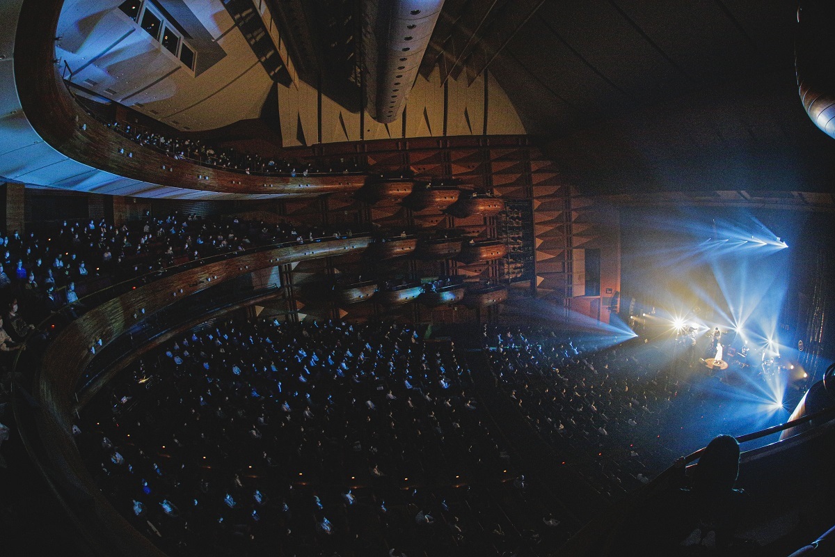 その所信表明のように歌われたReoNaのライフ・バイオグラフィーである一曲「絶望年表」。18歳の夏に初めて買ったアコースティック・ギターを奏でながら、バンドメンバーと横一列でフォーキーに歌い上げる歌は今の悲しみの物語ではなかった。暖かく優しい歌声は3階席まである高い天井に響き渡り、観客に降り注ぐ。