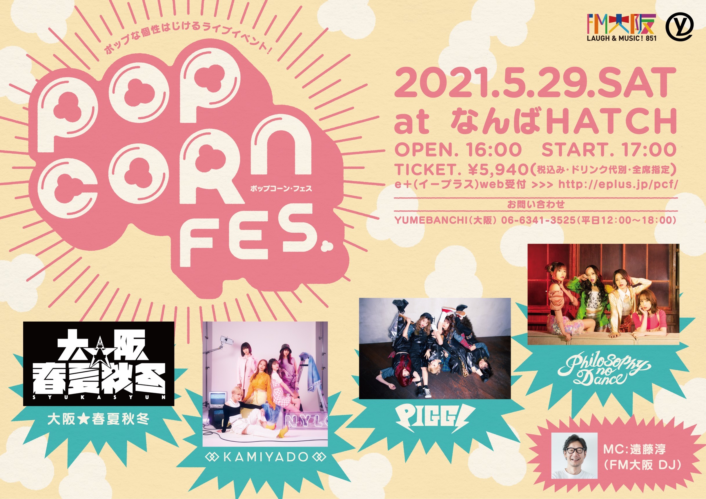 “POP”な個性はじけるアーティストが登場するライブイベント『POPCORN FES.』が、5月29日(土)に大阪・なんば Hatchにて開催される。