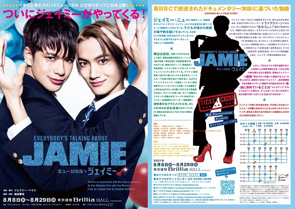 2021年8~9月、東京・大阪にて上演されるミュージカル『ジェイミー』。本公演のデジタルチラシとスポットが公開された。また、5月9日(日)には歌唱パフォーマンスイベント、公演中にはアフタートークイベントが開催されることもわかった。