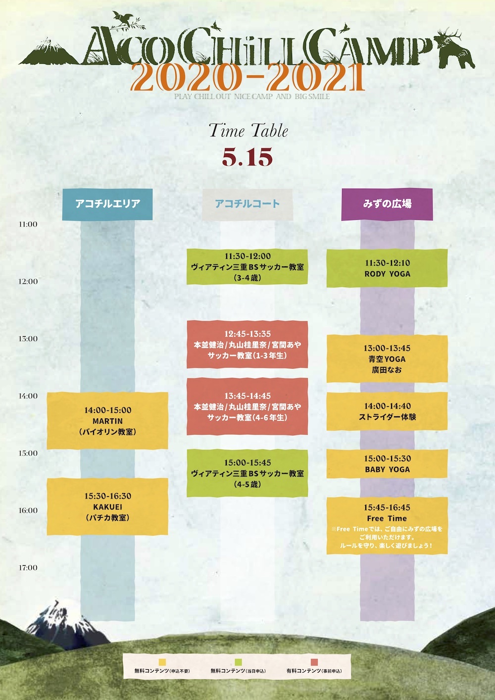 『ACO CHiLL CAMP 2020-2021』5月15日チャレンジ タイムテーブル
