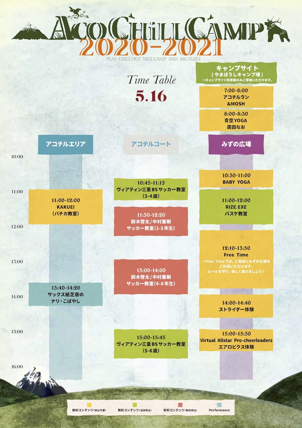 『ACO CHiLL CAMP 2020-2021』5月16日チャレンジ タイムテーブル