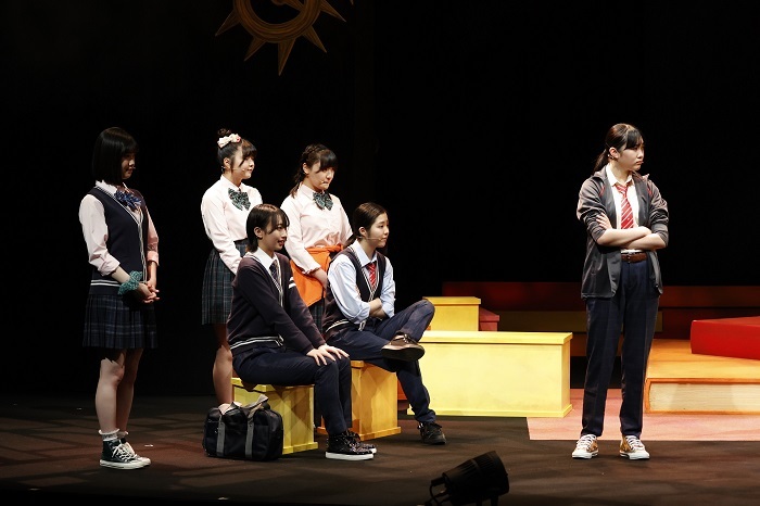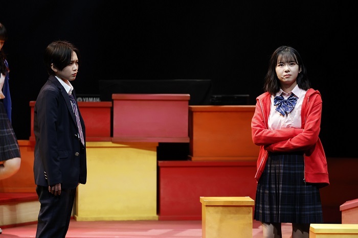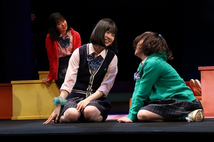 女子役では仲良し3人グループの赤担当・ノゾミ(演:山﨑夢羽)のキツい性格が出色の演技力だ。青担当・カナエ(演:里吉うたの)のテンポ感や緑担当・タマエ(演:高瀬くるみ)の天衣無縫さも加わり、舞台を賑やかせる。小グループをいくつか内包しながらいつの間にか全体の一体感に繋げてしまう空気感はBEYOOOOONDSの実力が垣間見えるところ。