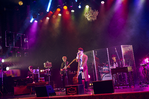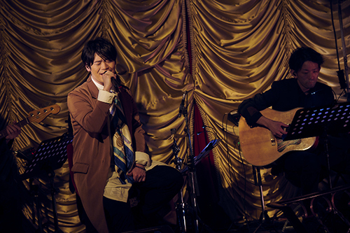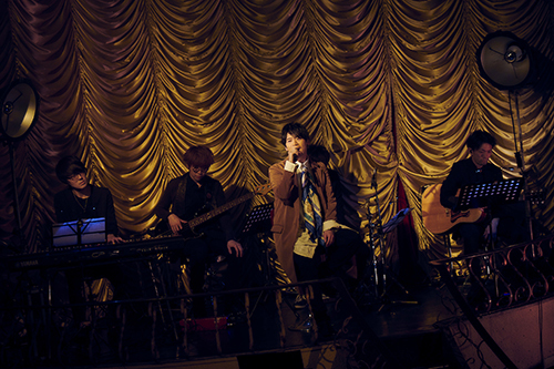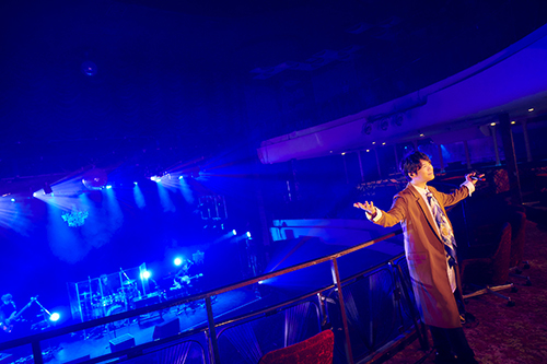 会場は大正ロマンのオペラハウスのような佇まいの東京キネマ倶楽部。チケットカウンターに到着したところで、古川の出迎えを受ければ、そこからフロアへ。緞帳が開いて、バンドメンバーと古川がステージに立つ。さぁ、ライブのはじまりだ。