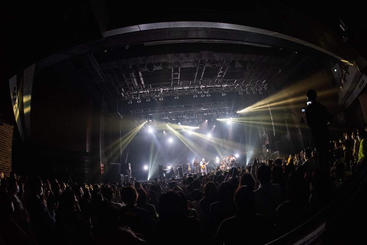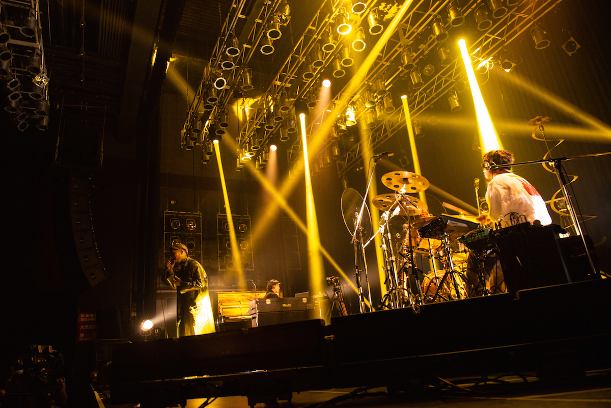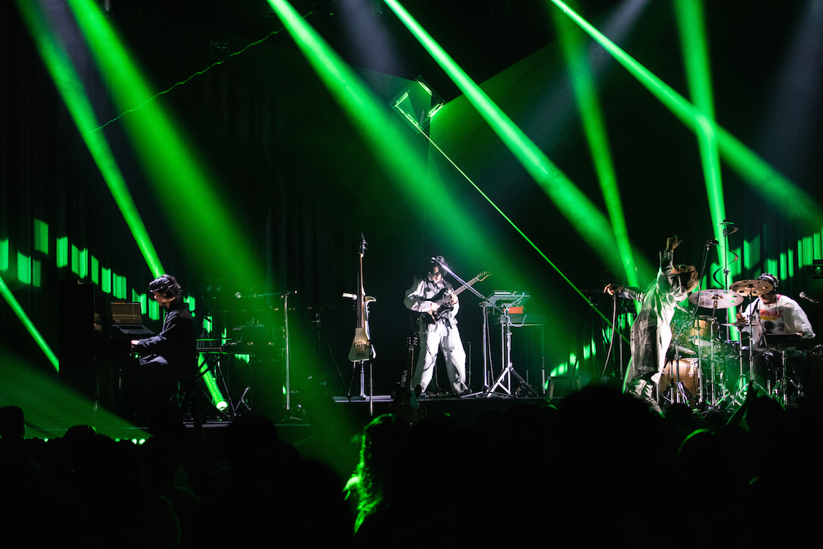 昨年6月にリリースしたアルバム『EYES』は荒田洸(Dr)が高度に発達した情報社会の多様性と宇宙というテーマを発案し、井上幹(Ba/Gt)が中心となって脚本を書き、アルバムを構成する楽曲はメンバー個々が軸に作曲するという手法を採っている。ロックやジャズ、ネオソウル、ヒップホップなど様々なバックボーンを持つこのバンドのメンバーの個性が際立っているという意味で、この作品自体が立体的だ。このアルバムを観客がいる状態でようやく構築することができたのが、約1年越しとなる今回のライブである。アルバムのリリース後、8月にはメンバーのリアルな動きとシンクロしたアバターがバーチャル空間でライブを展開する『SPECIAL 3DCG LIVE』を実現。その後、ツアーの中止を余儀なくされ、今回の有観客ライブは『EYES』を完遂する意味でも、配信を何度も行うことに意義を見出せないというバンドのポリシーからも不可欠なライブだったと思う。