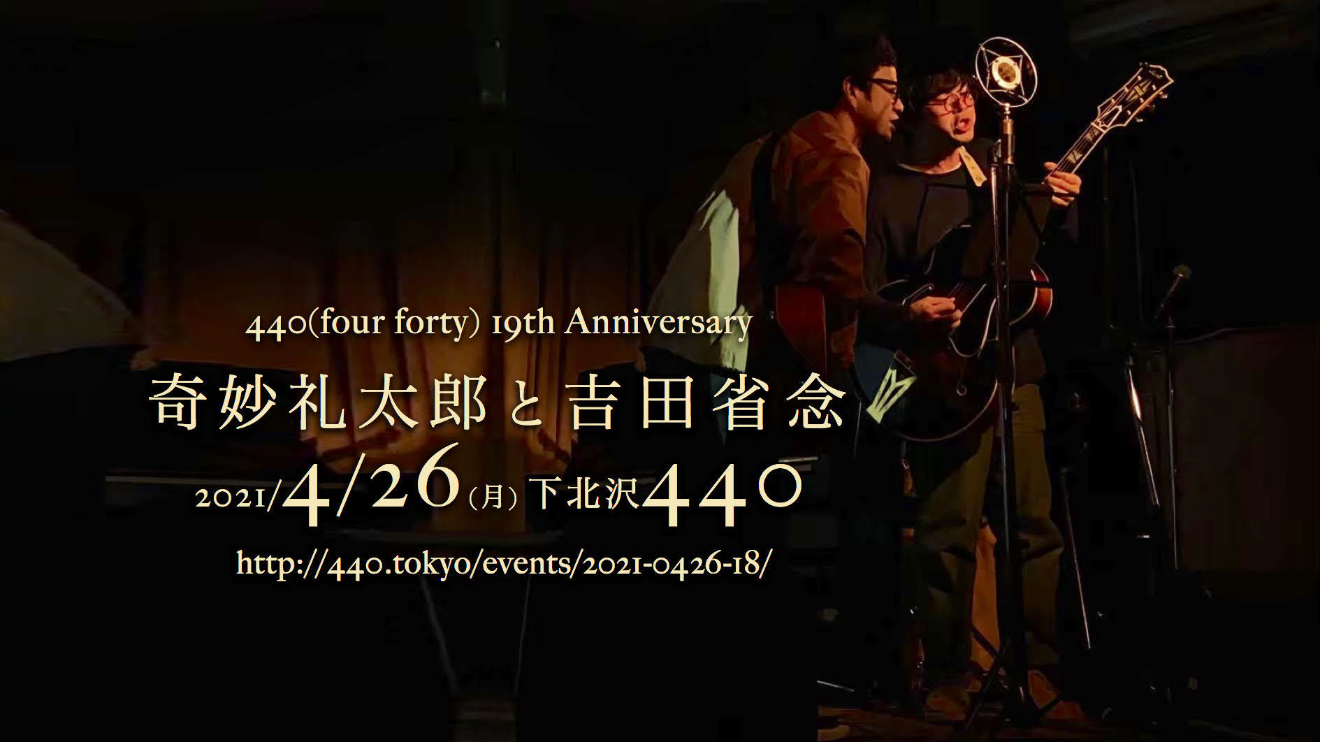 奇妙礼太郎と吉田省念のデュオライブが、4月26日(月)に下北沢440にて開催することが急遽決定した。