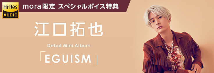待望のソロアーティストデビューを記念して、江口拓也のデビューミニアルバム『EGUISM』を、期間中にmoraで購入した全員にスペシャルボイスメッセージがプレゼントされる豪華特典が決定した。対象期間は、2021年4月21日 (水) ~ 2021年5月20日 (木) 23:59まで。
