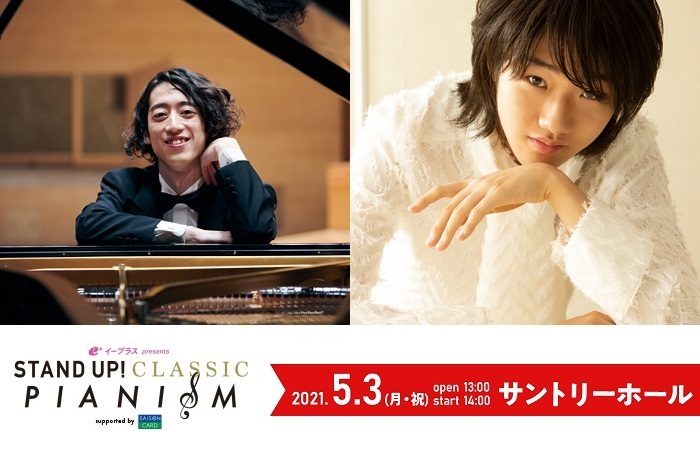 『STAND UP! CLASSIC PIANISM』は、2021年5月3日(月・祝)14:00開演。サントリーホールでの会場公演のほか、イープラス「Streaming+」でのライブ配信(アーカイブあり)も予定されている。来場券・視聴券はともに4月3日(土)10:00より販売中。