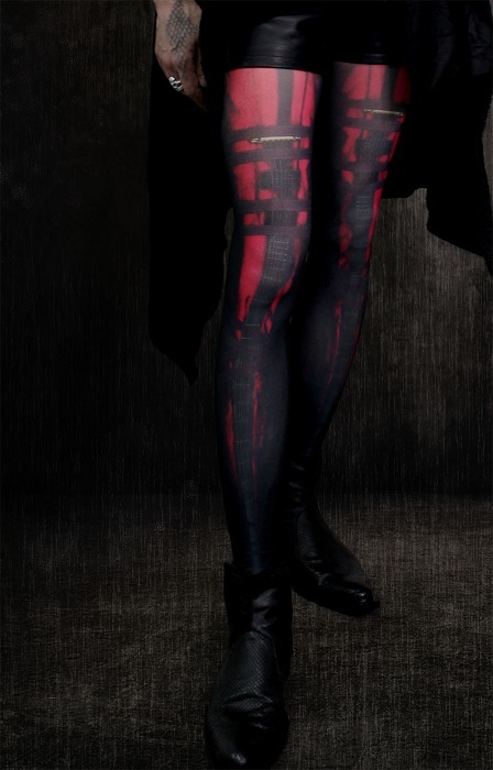 今回発売されるのは、Die監修デザインによる彼のギターをイメージして作られた新デザイン「BurgunDie」、そして2017年に発売され、Sold outとなったタイツを日本標準サイズに改めた新規格の「Serpent’s Lust」の2種アイテム。どれもいかにも彼らしいイメージが散りばめられている。