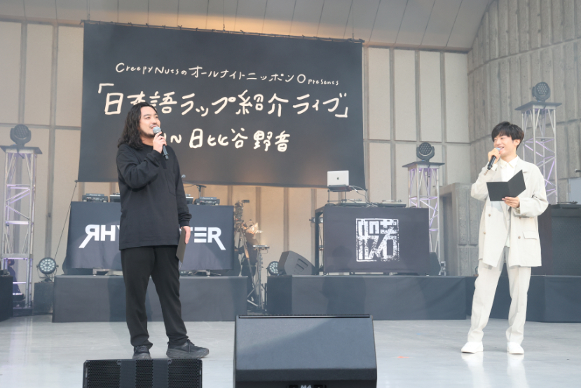 4月24日(土)、東京・日比谷野外大音楽堂にて『Creepy Nutsのオールナイトニッポン0 presents 日本語ラップ紹介ライブ in日比谷野音』が開催された。