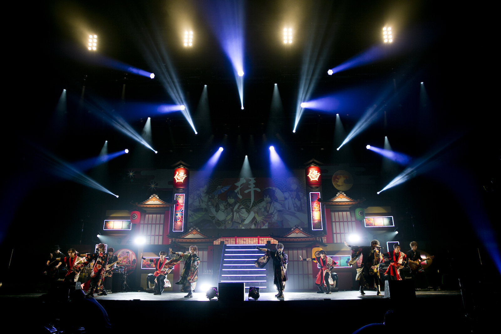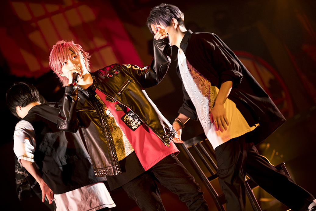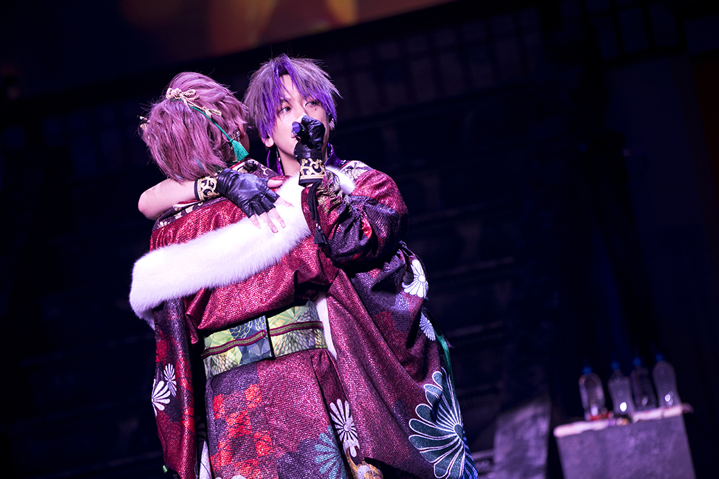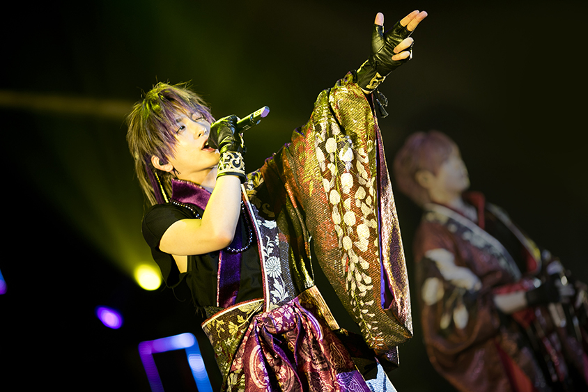 ダンサーとともに躍動しながら、時折カメラに目線を向けながら魅せた「花鳥風月」や、色気ある歌声、それぞれのイケボで口にする殺し文句も刺激的な「花魁俺嵐コンフュージョン」、そして<浦島坂田船!>という歌詞アレンジにもテンションが高まる「千本桜-guitar rock arrangement ver.-」。和情緒が浦島坂田船にはよく似合う。さらに、挑発的なフレーズ&歌声が映える「Peacock Epoch」、吐息でも心拍数を上昇させる「ホエールホール」と、halyosyワールドで輝きを放つ4人から、ひとときたりとも目が離せない。